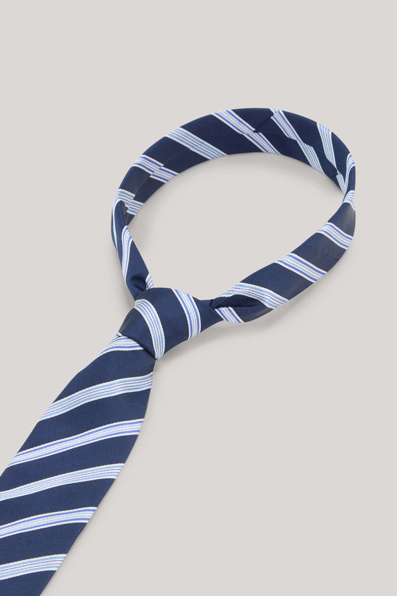 Die Krawatte überzeugt aus purer Seide mit klassischen Streifen als stilvolle Ergänzung des Looks. Für das moderne Design sorgt die schmale Form mit spitzem Zulauf. Ein rückseitiger Handriegel rundet das Accessoire ab.