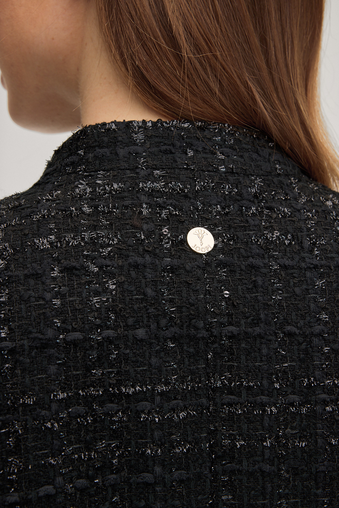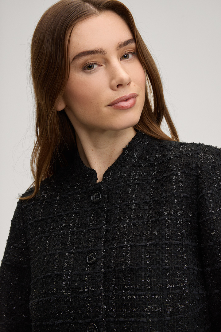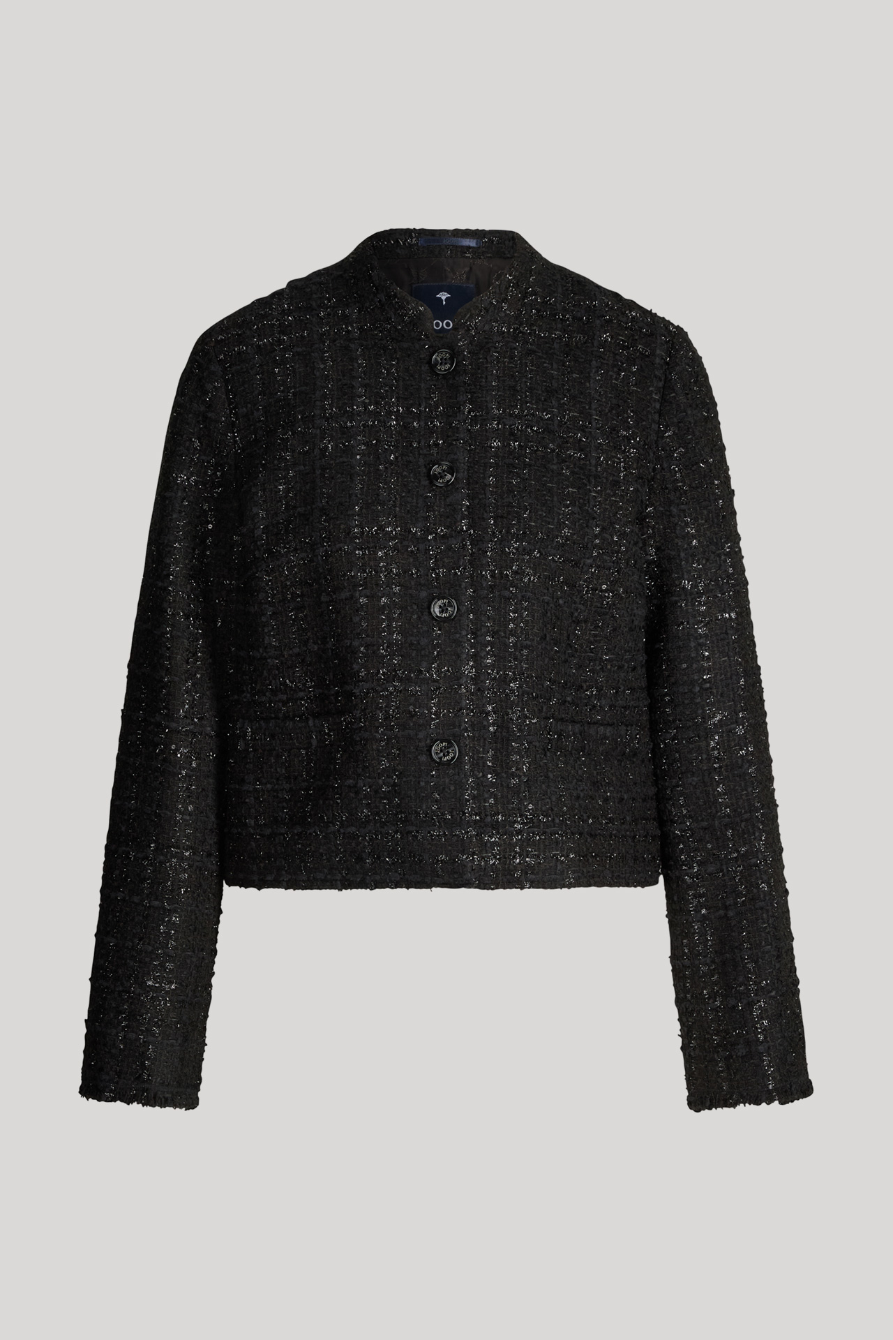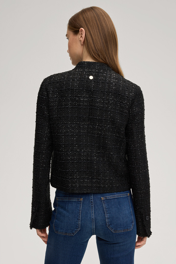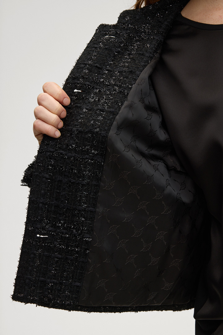 Ob klassisch, chic oder lässig kombiniert, der Blazer Jacy aus strukturiertem Tweed macht jeden Look einzigartig. Ein schmaler Stehkragen, der Knopfverschluss und vorderseitige Taschen verleihen stilvolle Akzente, modern ergänzt durch fransige Ärmelabschlüsse. Ein monochromes Futter im Logo-Print rundet das Piece ab.