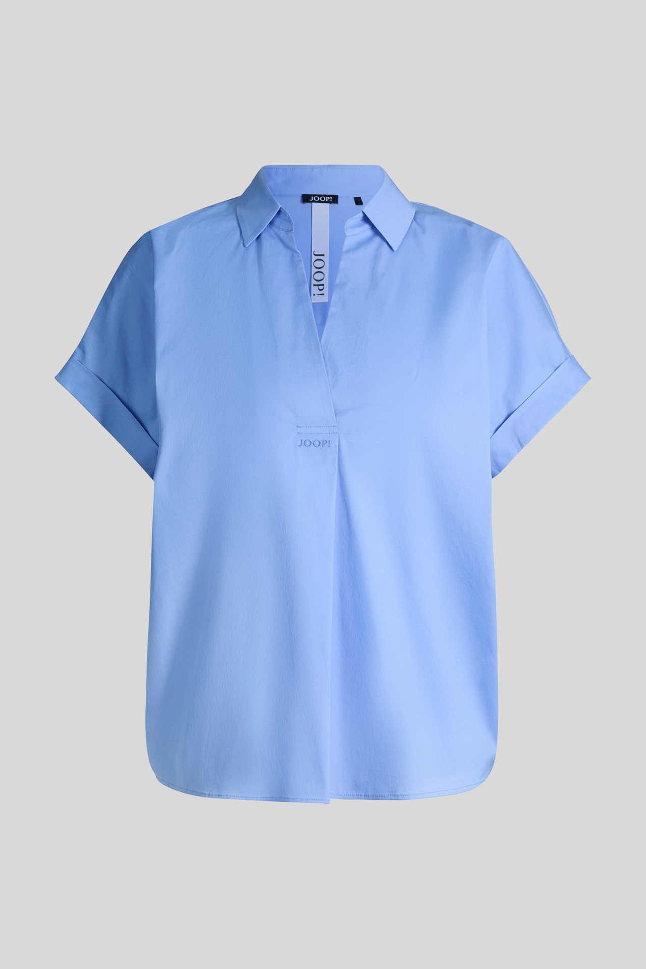 Basilia begeistert als stylishe Bluse mit minimalistischen Details, die stilvolle Akzente setzen. Überschnittene Schultern, kurze Ärmel mit fixierten Bündchen und die Ausschnittpartie mit Faltendetail und Logo-Stitching bringen den charmanten Twist zur Geltung. Für das feminine Finish sorgt der kombinierte Hemdkragen. Das Essential passt perfekt für sommerliche Outfits dank der Qualität aus Baumwollstretch.
