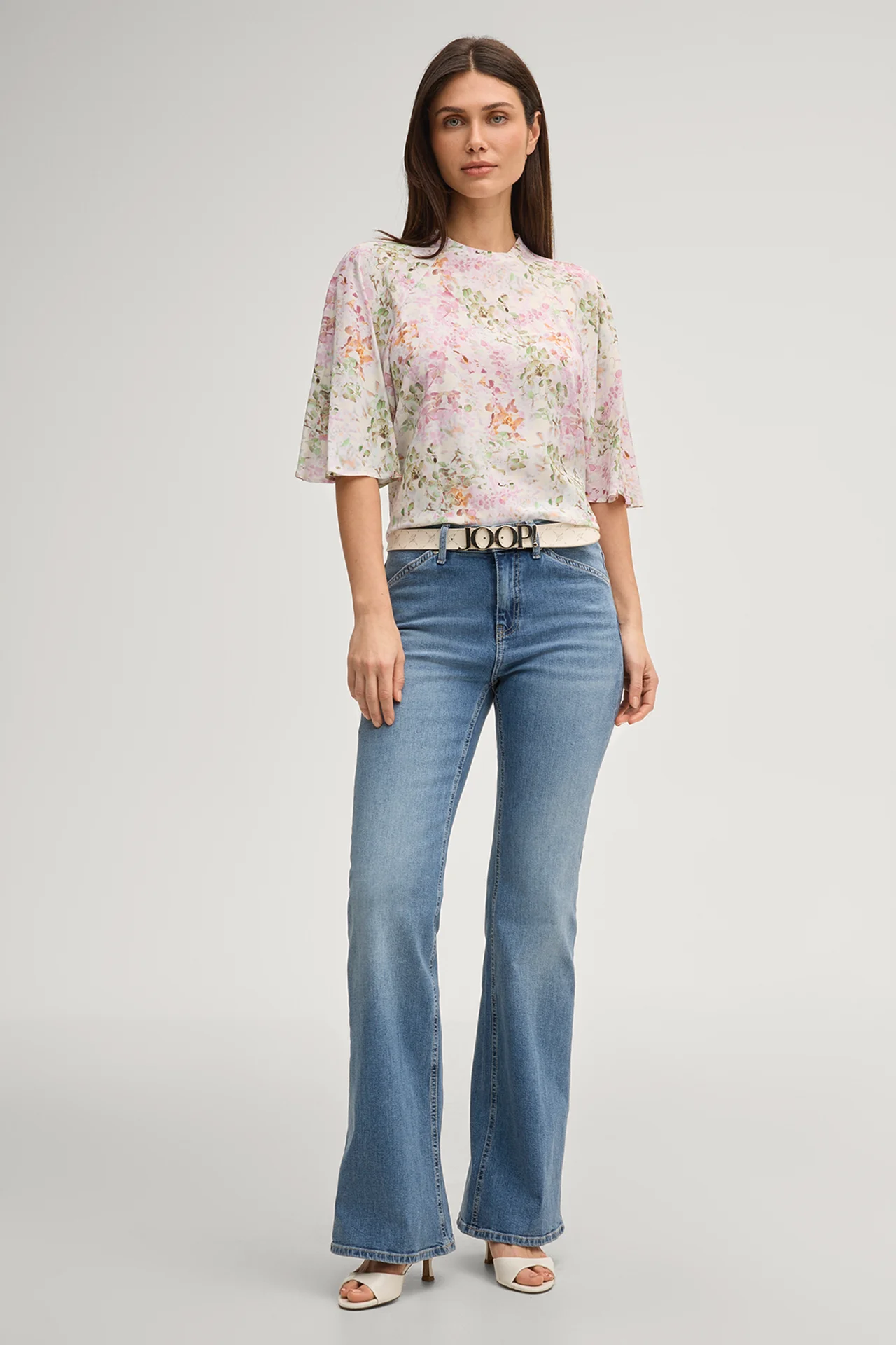 Das Model trägt die Grösse 36 bei einer Körpergrösse von 180 cm, einem Brustumfang von 83 cm, einem Taillenumfang von 60 cm und einem Hüftumfang von 90 cm.