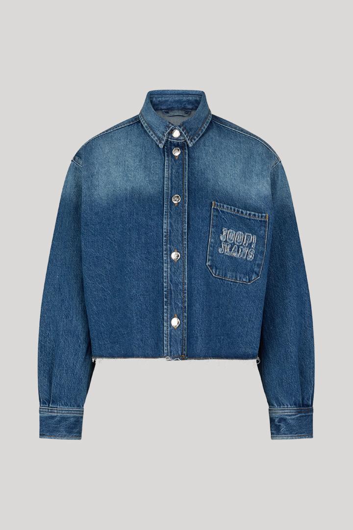 Als cooles Essential für den Look überzeugt die Jeansbluse Udela in modern verkürzter Silhouette mit feinen Fransen am Saumabschluss, klassisch ergänzt durch den Hemdblusenkragen und die aufgelegte Knopfleiste. Die Tasche mit Signature-Stitching rundet das Piece aus purer Baumwolle akzentvoll ab.