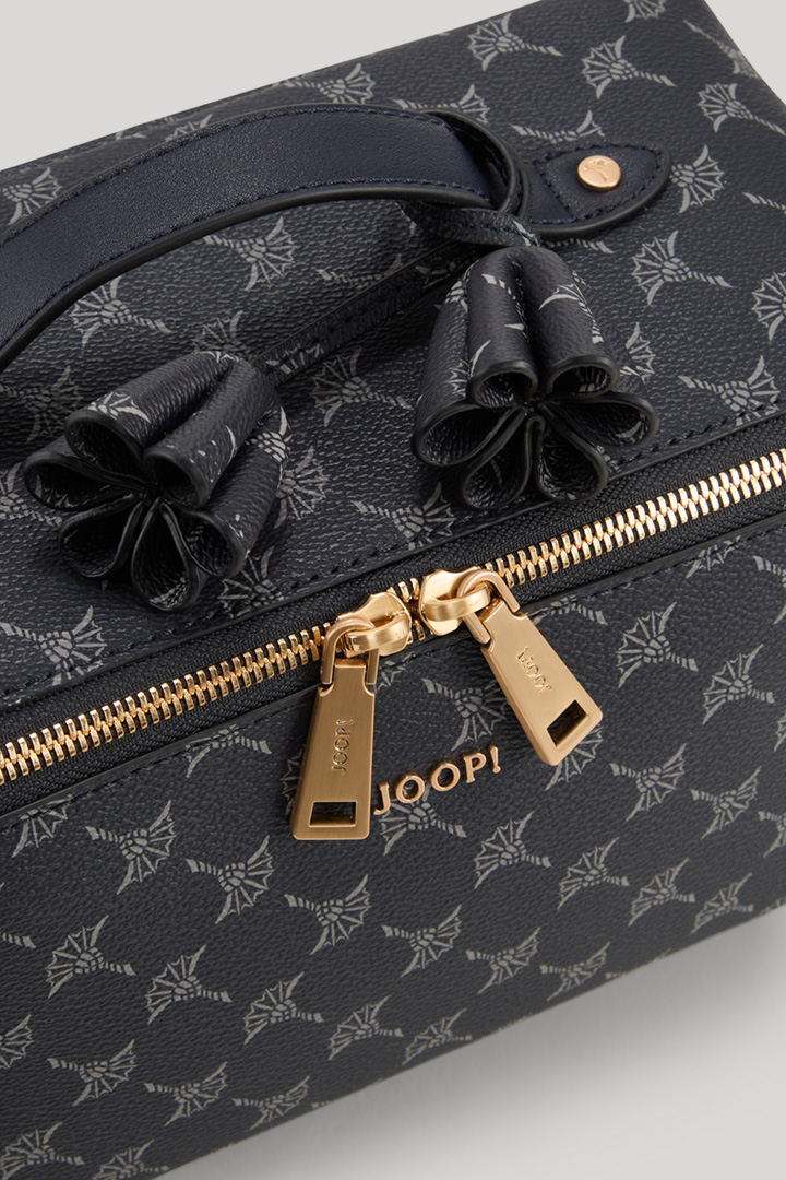 Kunstleder mit ikonischem Cornflower-Print zeichnet das Beauty-Case Zea aus der Cortina-Serie aus. Das Design heben der Zwei-Wege-Zipper und der kurze Tragehenkel hervor, akzentuiert durch dekorative Quasten-Anhänger. Für das stimmige Finish sorgt das Inlay mit Zipfach.