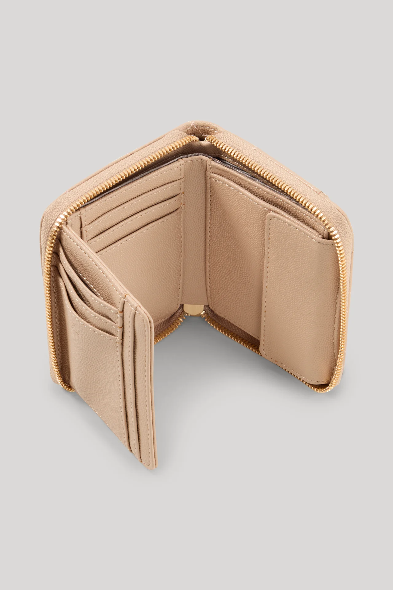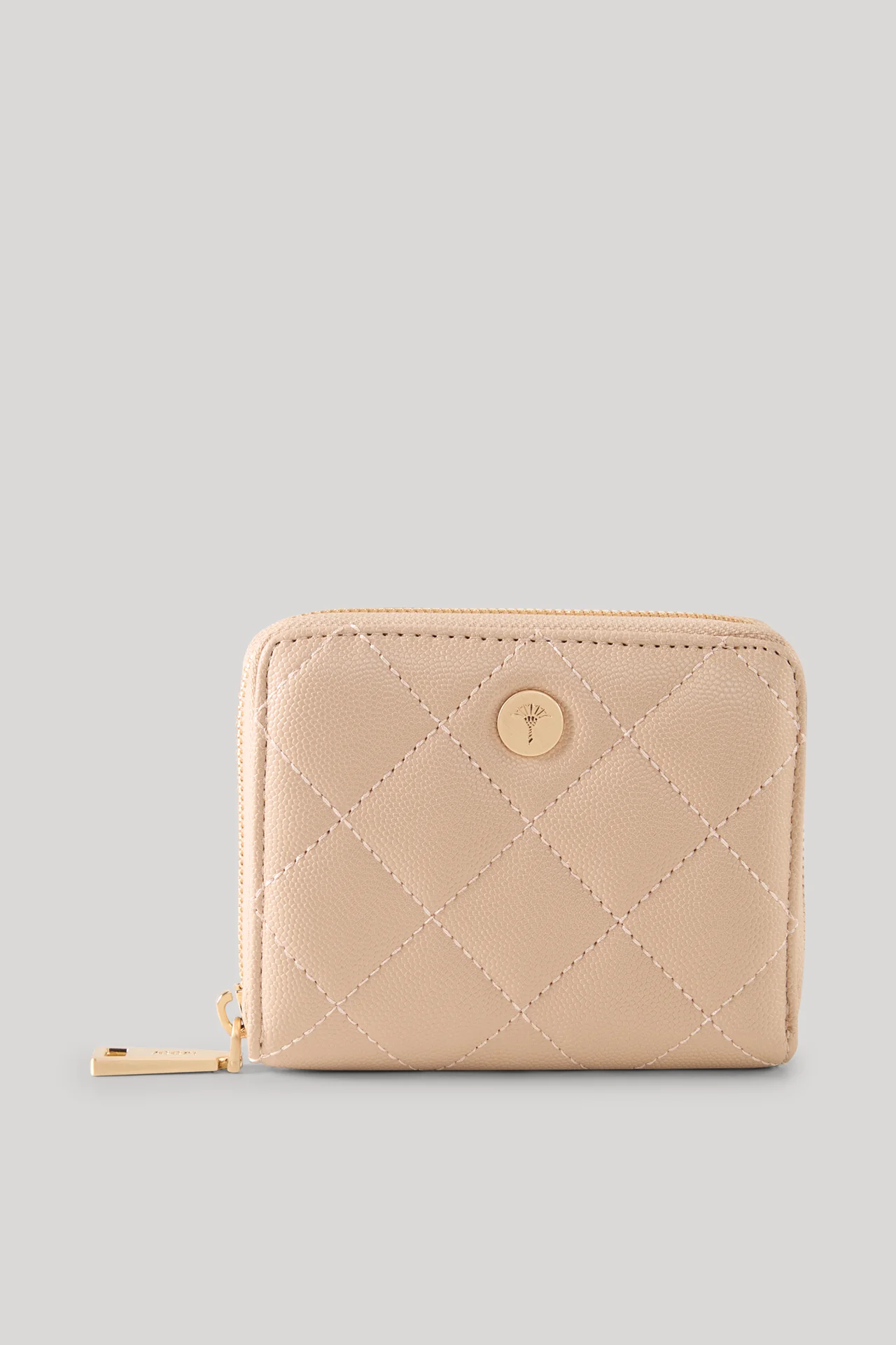Im abgesteppten Design aus fein genarbtem Kunstleder begeistert die Geldbörse Bellagio Nisa als modernes Accessoire, akzentuiert durch Signature-Details. Das Piece zeichnet sich durch das zippbare Inlay mit diversen Fächern aus. Ein extra Münzfach mit Druckknopfschließe rundet das Item stimmig ab.