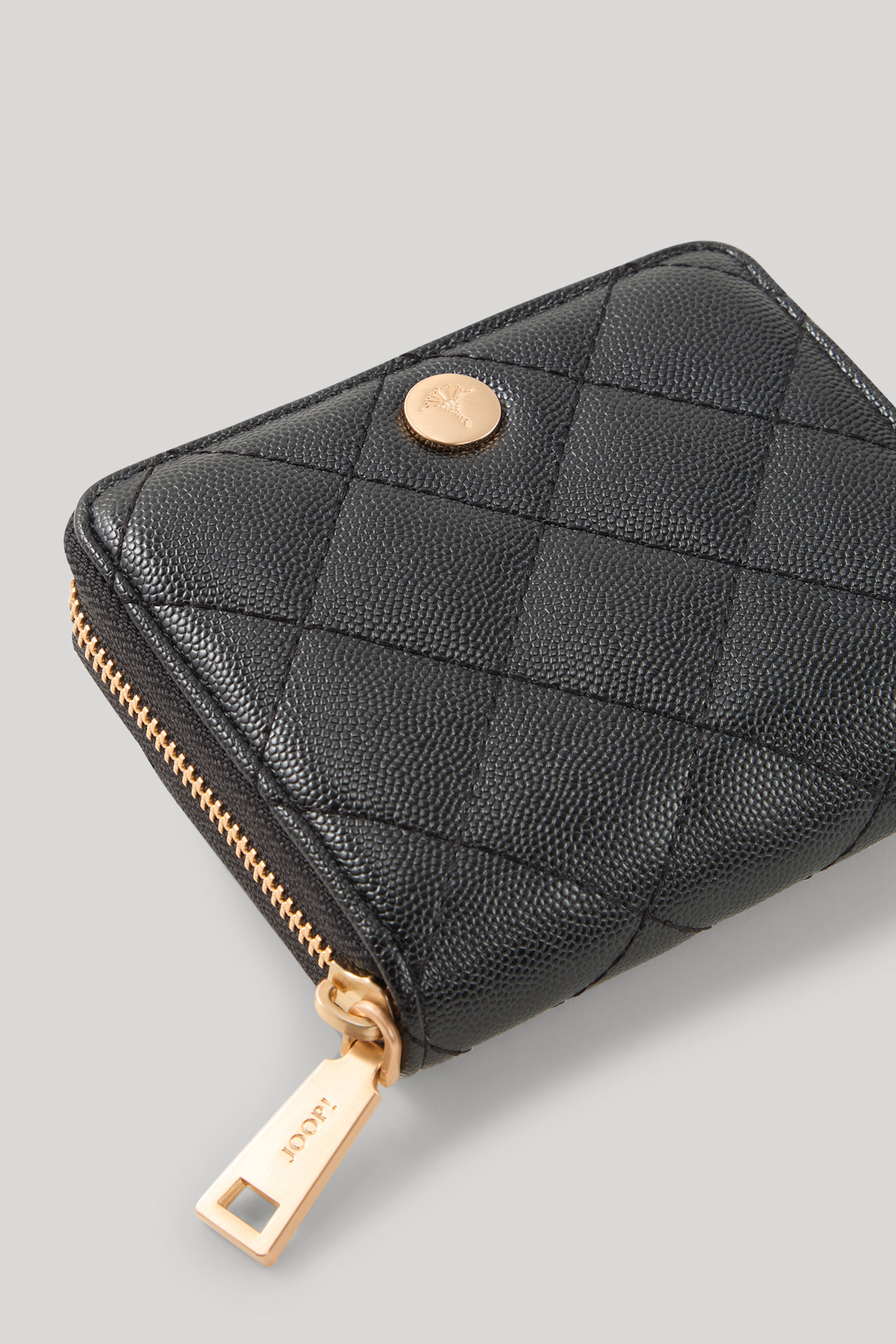 Im abgesteppten Design aus fein genarbtem Kunstleder begeistert die Geldbörse Bellagio Nisa als modernes Accessoire, akzentuiert durch Signature-Details. Das Piece zeichnet sich durch das zippbare Inlay mit diversen Fächern aus. Ein extra Münzfach mit Druckknopfschließe rundet das Item stimmig ab.
