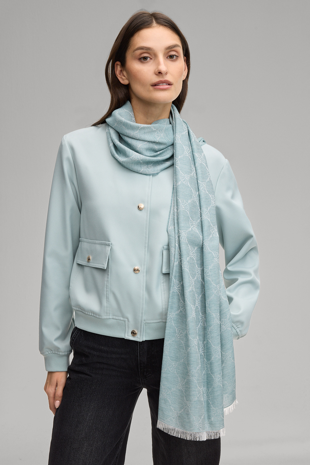 Verleiht Looks das Iconic Finish: der Schal Ferdis aus leichtem Viskosemix im Logo-Jacquard-Design und kontrastiver Two-Tone-Optik. Feine Fransen an den Schmalkanten runden das Accessoire modern ab.