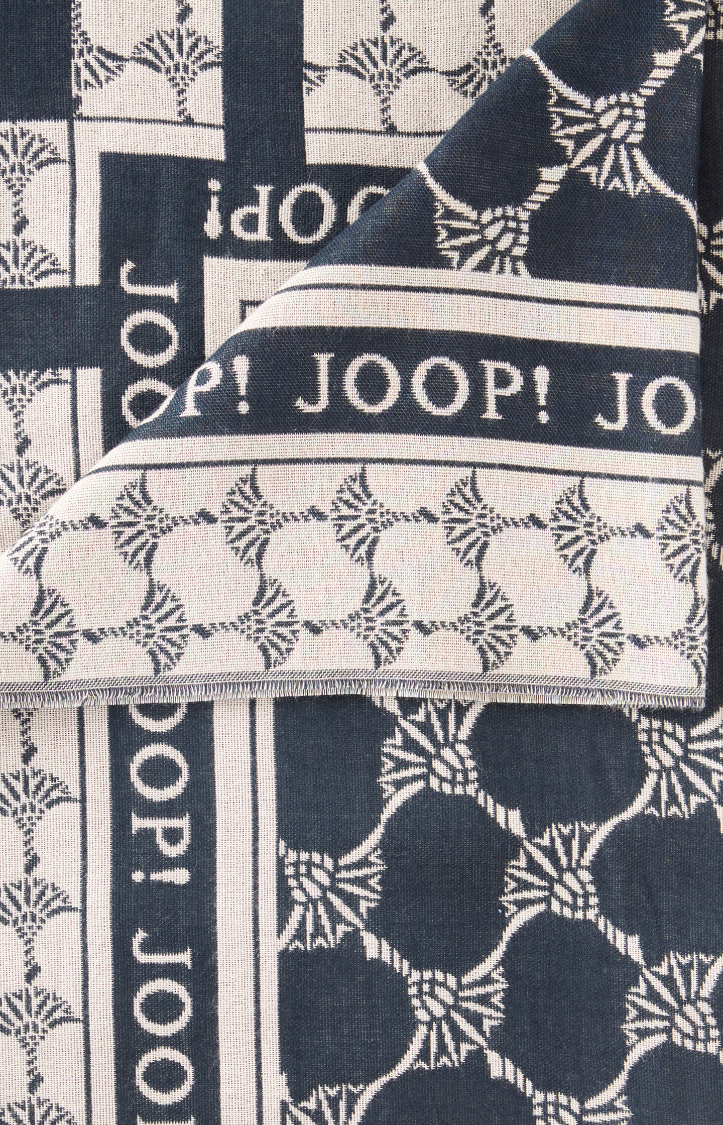 Extraweicher Viskoseblend zeichnet den JOOP! Jacquard-Schal im stilvollen Two-Tone-Design aus, markentypisch akzentuiert durch eingewebte Logo-Schriftzüge und Cornflowers. Feine Fransen-Details verleihen dem Accessoire lässiges Flair – ein abwechslungsreiches Style Highlight.