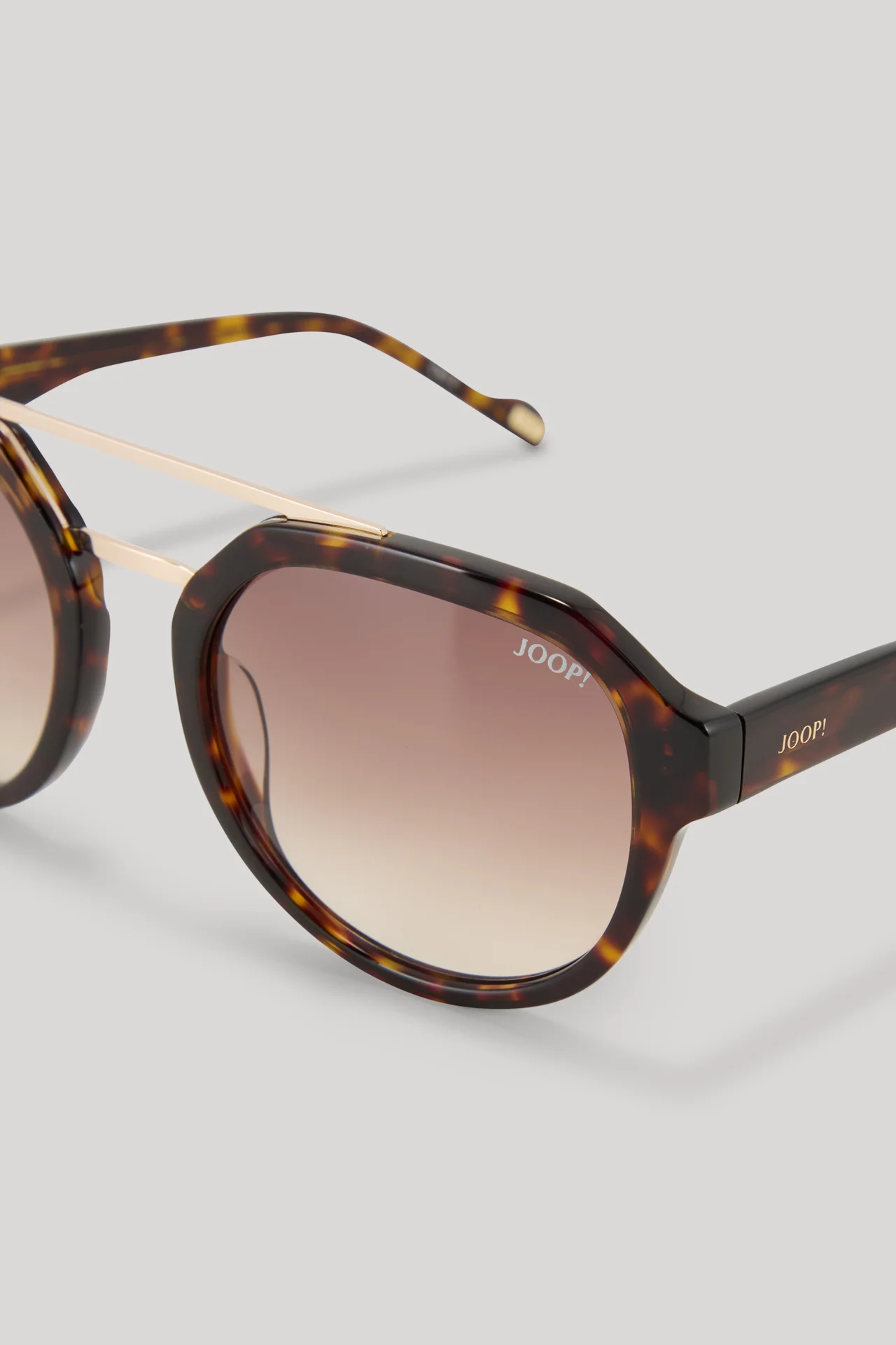 Der runde Shape, feine Nasenstege und der angenehm leichte Acetat-Rahmen zeichnen die Sonnenbrille als modernes Accessoire für variable Alltagslooks oder den nächsten Urlaub in der Sonne aus. Für die raffinierte Optik sorgt das zeitlose Muster, akzentuiert durch dezente Signature-Schriftzüge. Für den perfekten Schutz vor UV-Strahlen sorgen die getönten Gläser aus Nylon.