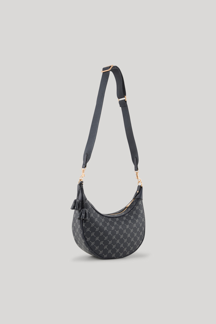 Elegant und mit Signature Twist präsentiert sich die Schultertasche Cortina Jennifer in stilvoller Halbmond-Optik. Details aus veganem Leder und der minimalistische Cornflower-Print sorgen für den einzigartigen Eyecatcher-Effekt. Der längenverstellbare Crossbodyriemen verleiht dem Look ein flexibles Upgrade, funktional abgerundet durch den Zip-Verschluss. Eine kleine Innentasche ergänzt das Item.