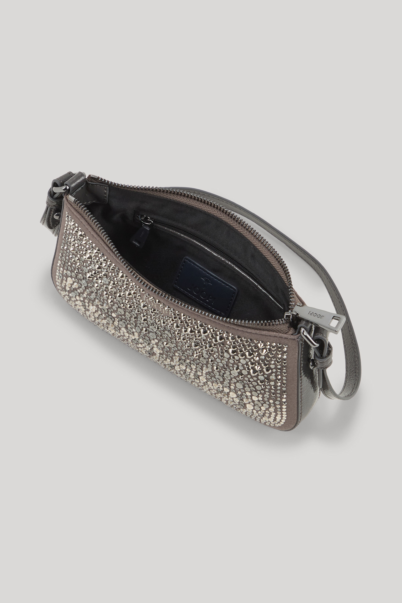 Funkelnde Akzente für festliche Anlässe, Party-Looks oder als Eyecatcher mit Shirt und Jeans für einen luxuriösen Twist gelingt mit der Schultertasche Gioiello Eunike mit Paillettenverzierung. Das Accessoire überzeugt aus veganem Leder und verfügt über einen längenverstellbaren Riemen sowie eine kleine Innentasche. Der Zip-Verschluss rundet das Item ab.