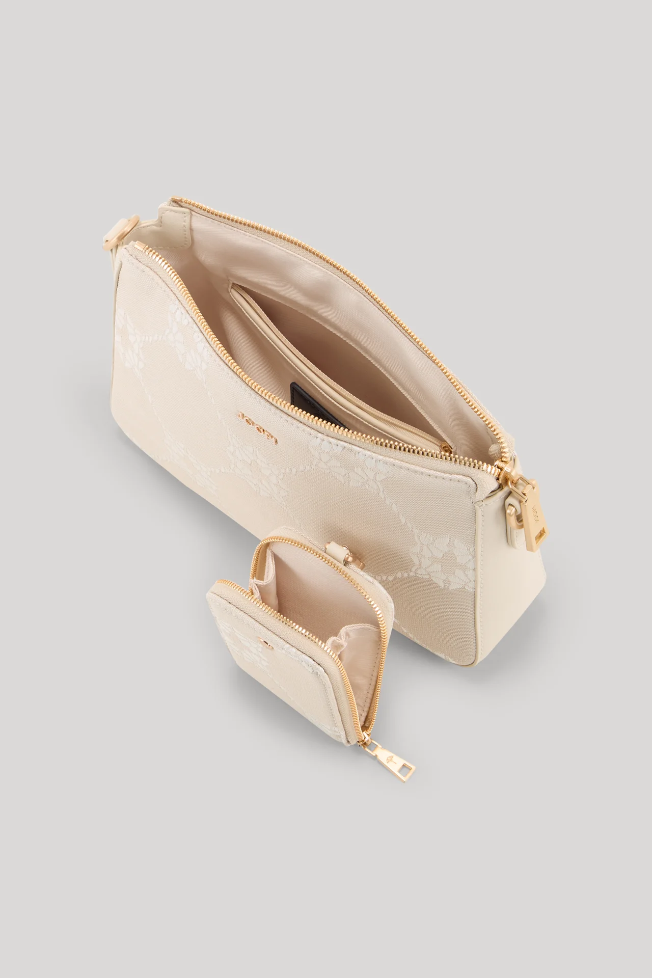Canvas im labeltypischen Cornflower-Design verleiht der Schultertasche Mosaico Jasmina einen urbanen Look. Das Piece zeichnet sich durch das zippbare Inlay aus, ergänzt durch den längenverstellbaren Schulterriemen. Für einen feinen Akzent sorgt das vorderseitige Logo-Relief. Als perfekt für kleinere Essentials erweist sich die Mini-Pouch, die sich auf Wunsch auch abnehmen und solo verwenden lässt.