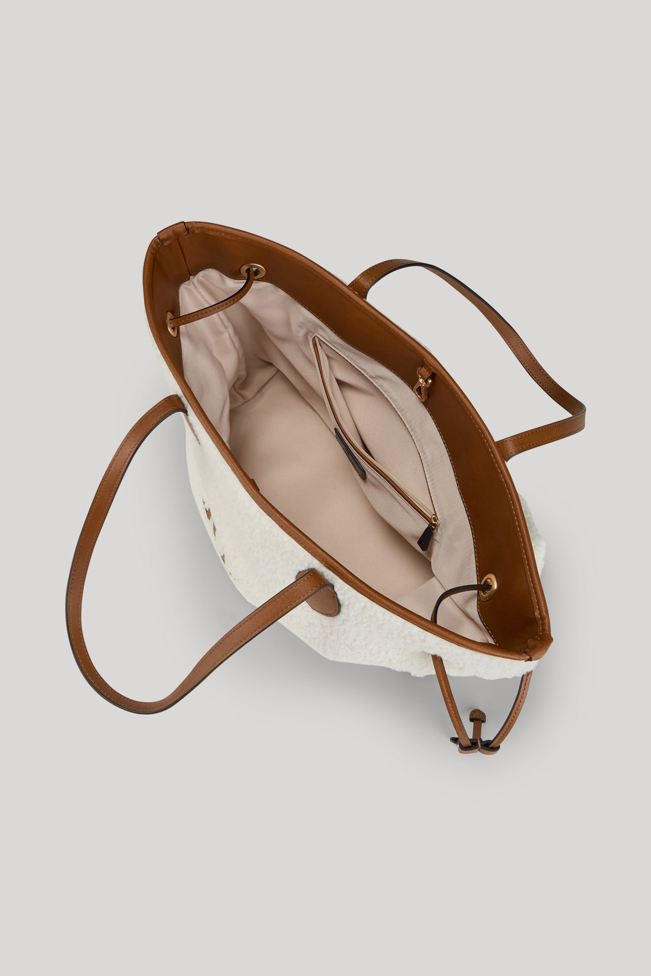 Highlight Accessoire: Der Shopper Lanoso Lara im Shearling-Design mit feinen Details in Lederoptik. Das ikonische Logo auf der Front bietet einen zusätzlichen Eyecatcher. Für das komfortable Upgrade sorgen der raffinierte Tunnelzug und ein inwendiger Haken-Verschluss. Aus Faux Fur und veganem Leder.