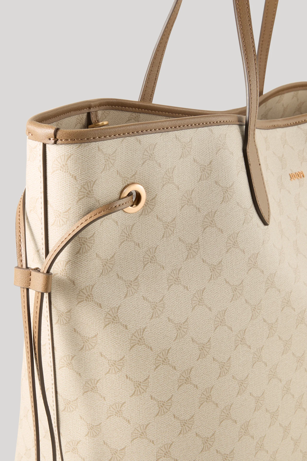 Das ikonische Monogramm-Design zeichnet den Shopper Mazzolino Lara als Signature Piece aus, akzentuiert durch das feine Logo-Relief. Klassische Tragehenkel sowie seitlich justierbare Bänder ergänzen das Accessoire. Das Inlay überzeugt mit abnehmbarer Clutch, die sich auch solo verwenden lässt. Für das moderne Finish sorgt die Qualität aus veganem Leder.
