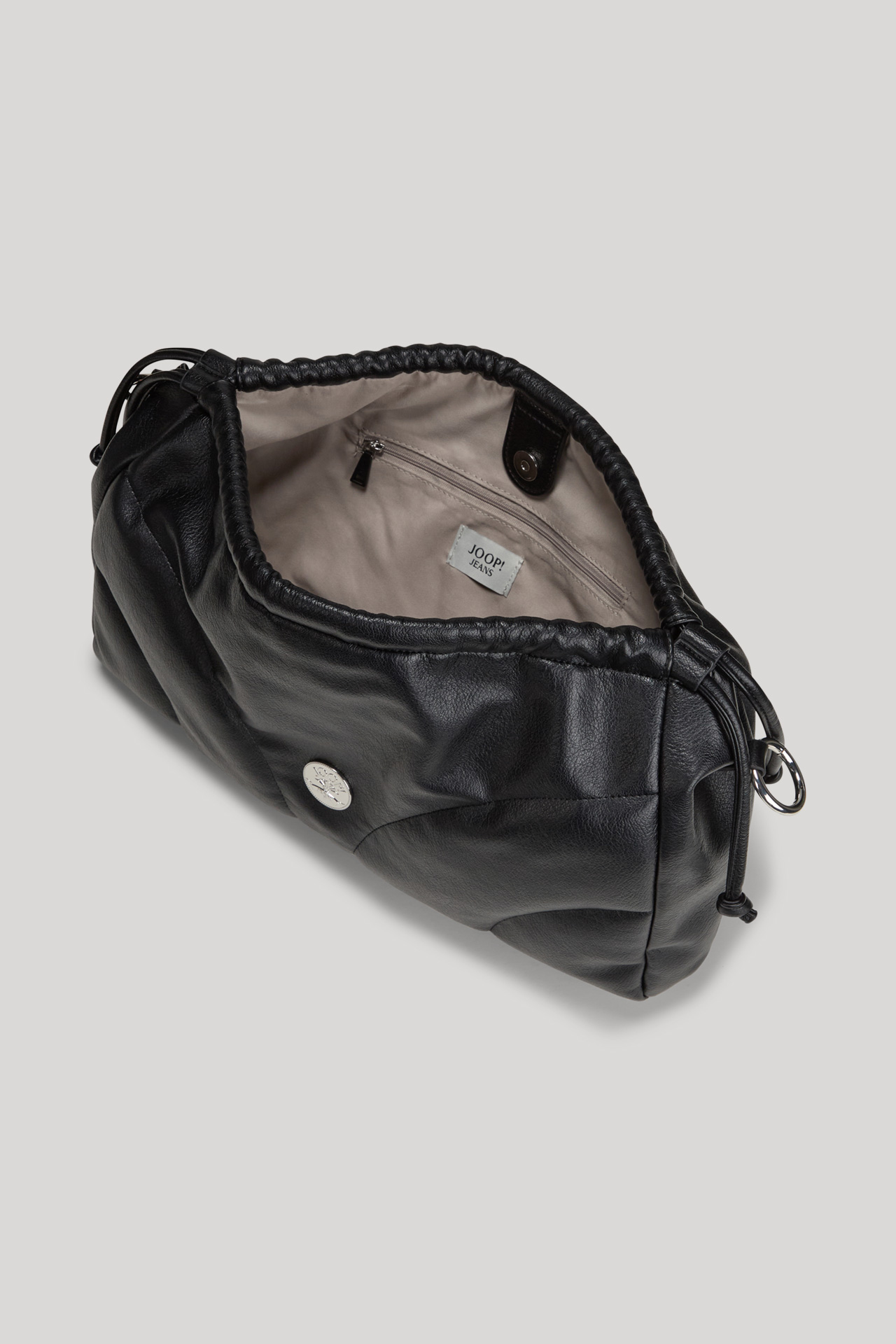 In modern geraffter Silhouette mit seitlichem Kordelzug erhält der Shopper Soave Sasou den lässigen Twist, ikonisch abgerundet durch das Signature Emblem. Mit zusätzlich magnetischem Druckknopfverschluss und inwendiger Zip-Tasche erweist sich das Item als Allrounder zu jedem Look.