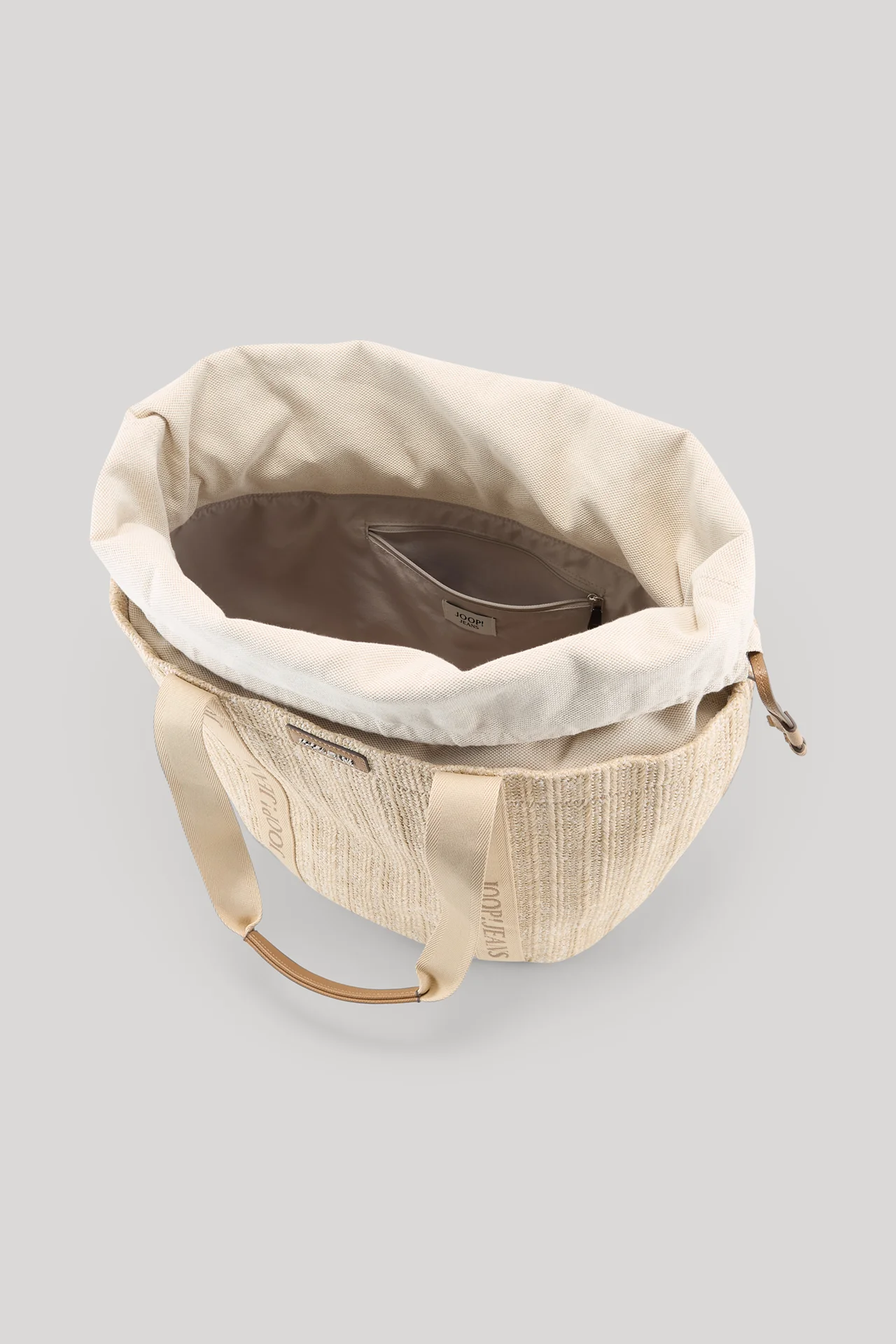 Im raffinierten Look in Bast-Qualität mit eingesetzter Textil-Partie und Tunnelzug begeistert der Shopper Spaggia Ultimo Camille. Tragehenkel im modernen Logo-Design und passende Tapes ergänzen das Accessoire und setzen zugleich labeltypische Akzente. Das Inlay mit zusätzlichem Zipperfach rundet das Item stimmig ab, das leichten Sommer-Looks mit Shirt und Rock oder dem fließenden Maxikleid ebenso ein Update verleiht wie dem Beach-Outfit.