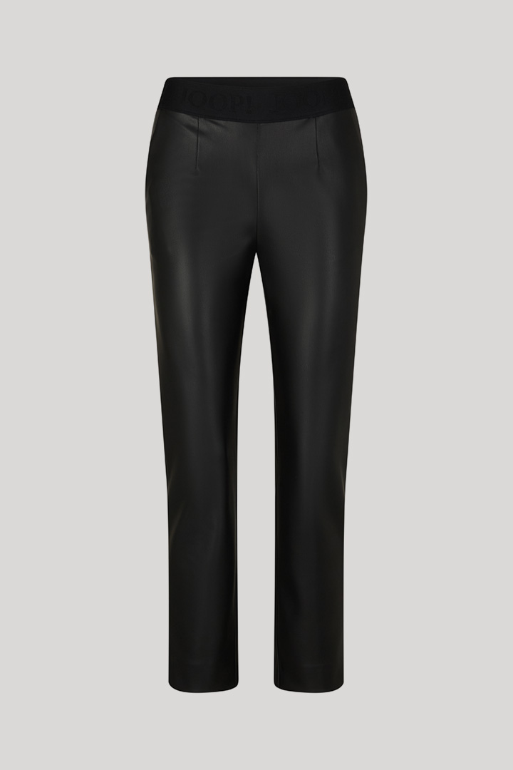 Die Hose Patricia überzeugt aus Kunstleder als modernes Piece für verschiedene Outfits. Für den Signature-Twist sorgt der angesetzte Bund im Logo-Design, während Bundfalten einen klassischen Akzent setzen. Die schmale, verkürzte Silhouette rundet das Item stimmig ab.