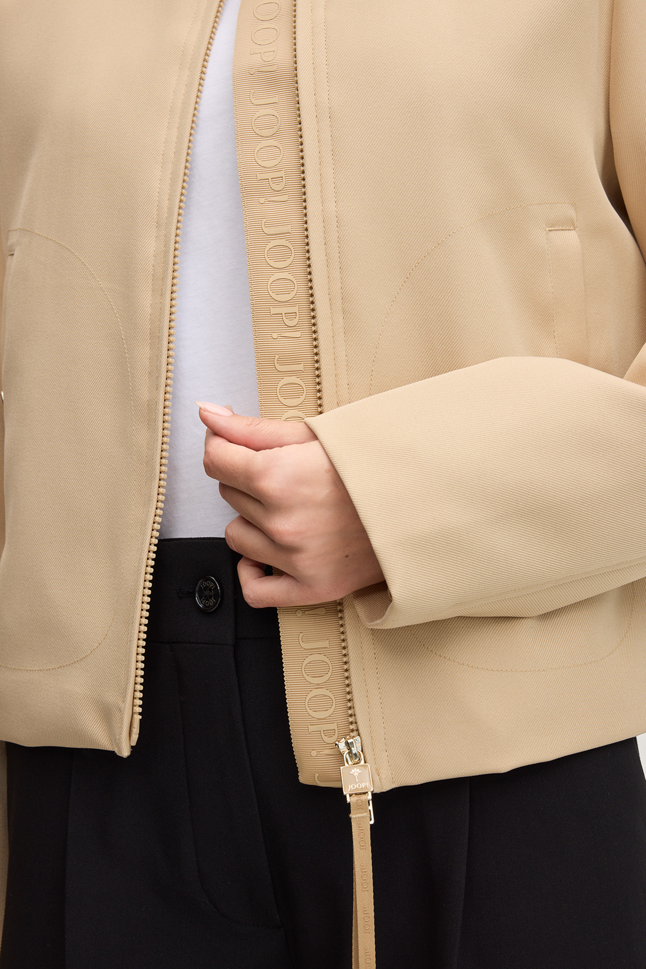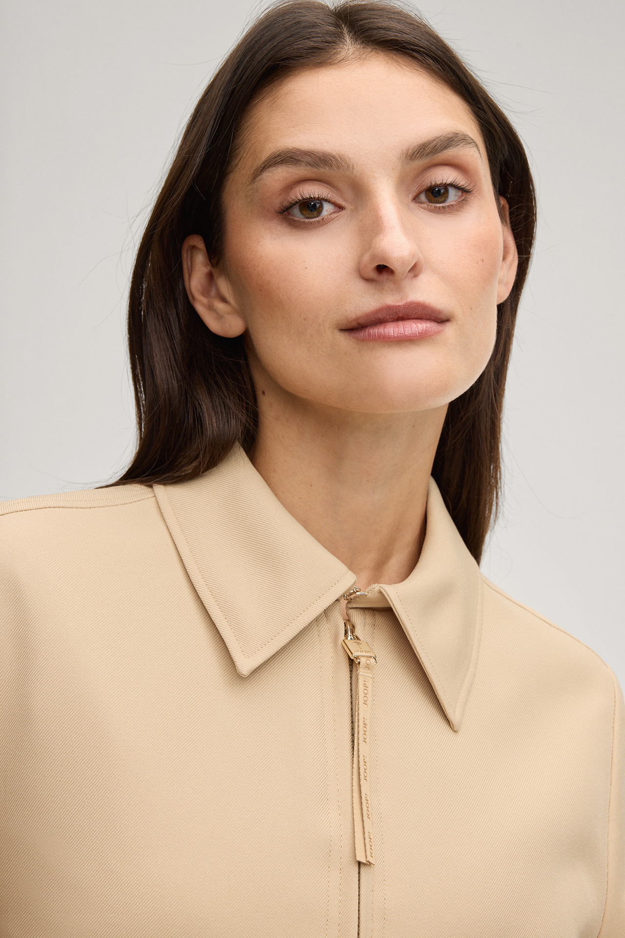 Die Jacke Osane besticht durch ein minimalistisches Design mit Umlegekragen und funktionalem Zwei-Wege-Zipper. Leistentaschen mit Logo-Druckknopf setzen Akzente, ergänzt durch das moderne Zugband und eine rückseitige Kellerfalte. Ein monochromes Futter rundet den Look ab.