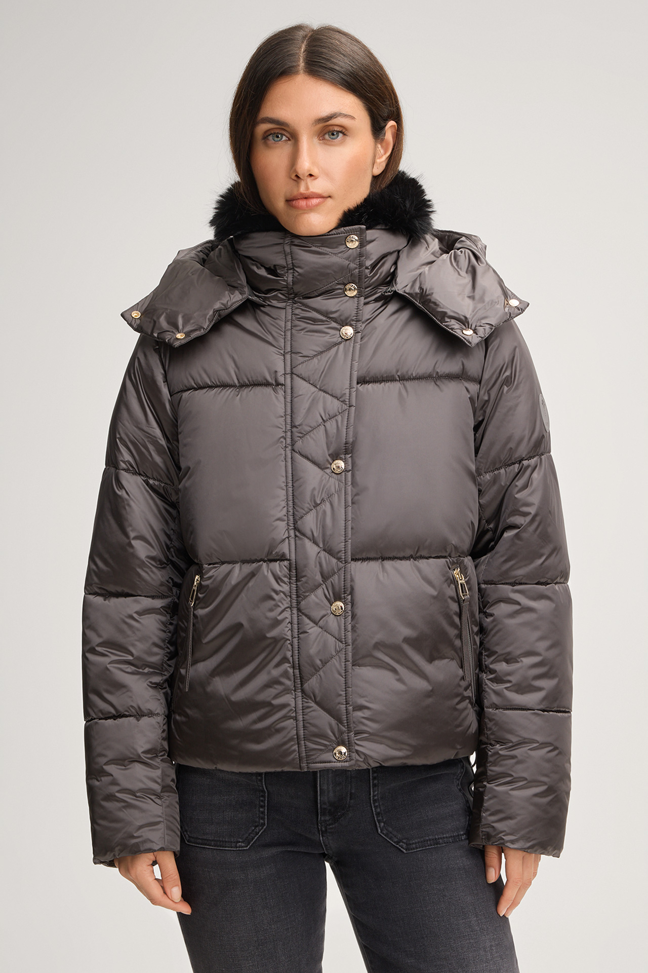 Wärmender Style: die Steppjacke Ozma mit technischer Wattierung, justierbarer Kapuze und Teddykragen. Für das moderne Design sorgen das Duo aus verdecktem Zwei-Wege-Zipper und Druckknopfblende sowie seitliche Taschen. Der Saumabschluss mit Tunnelzug rundet das Piece komfortabel ab.