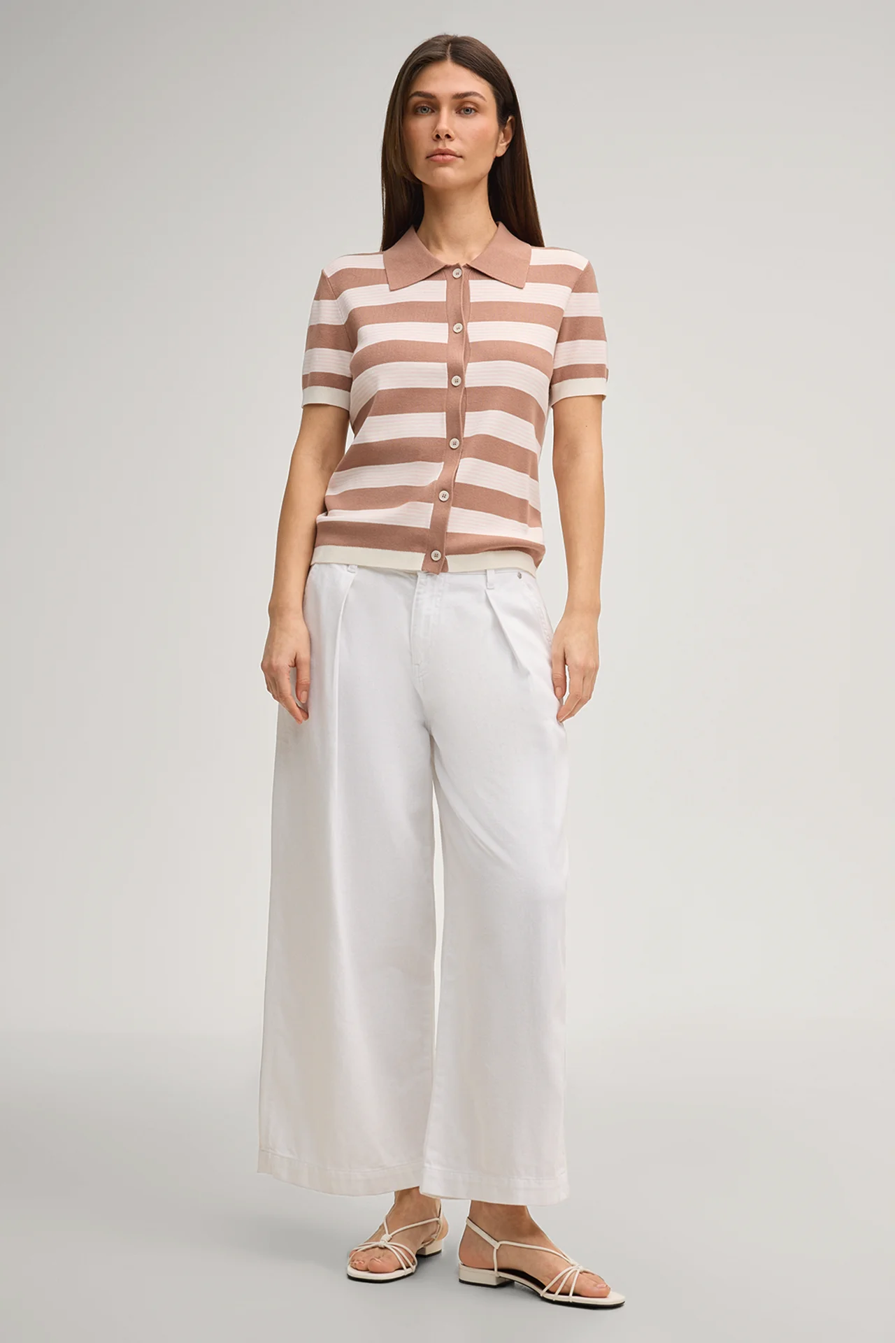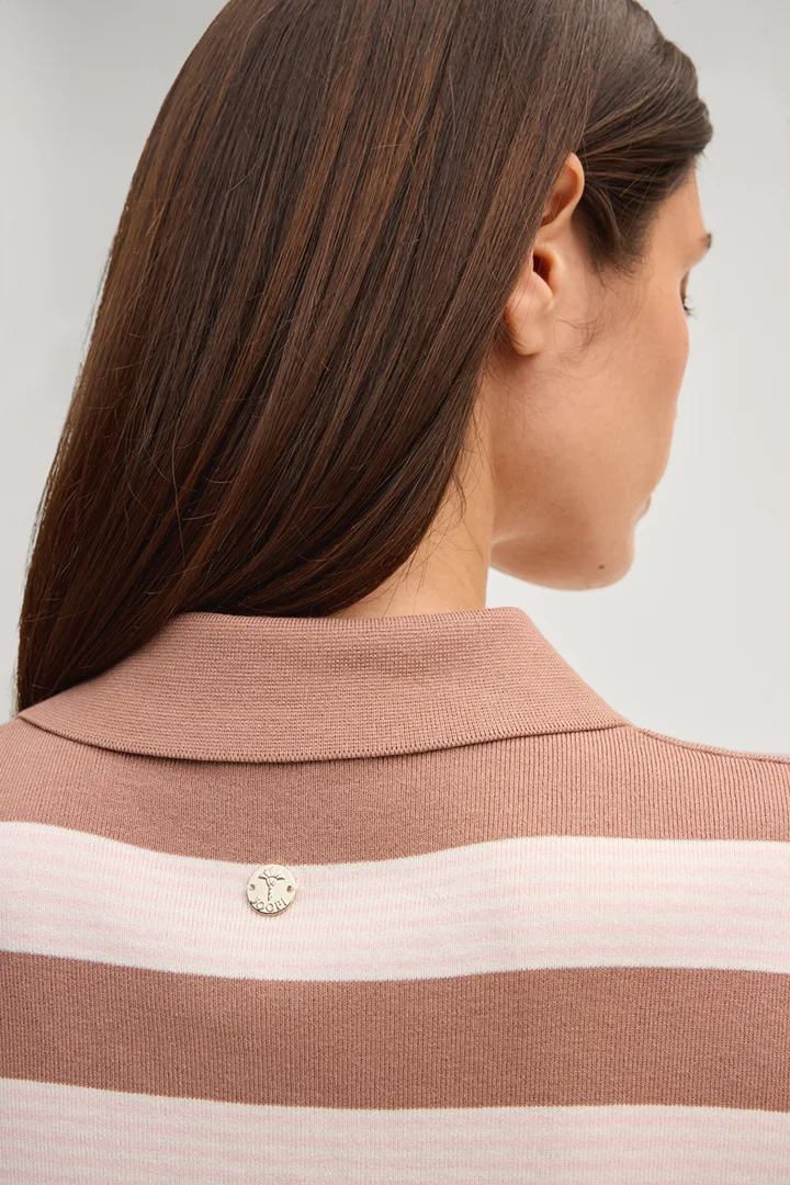 Poloshirt Kasha in Hellbraun/Rosé gestreift