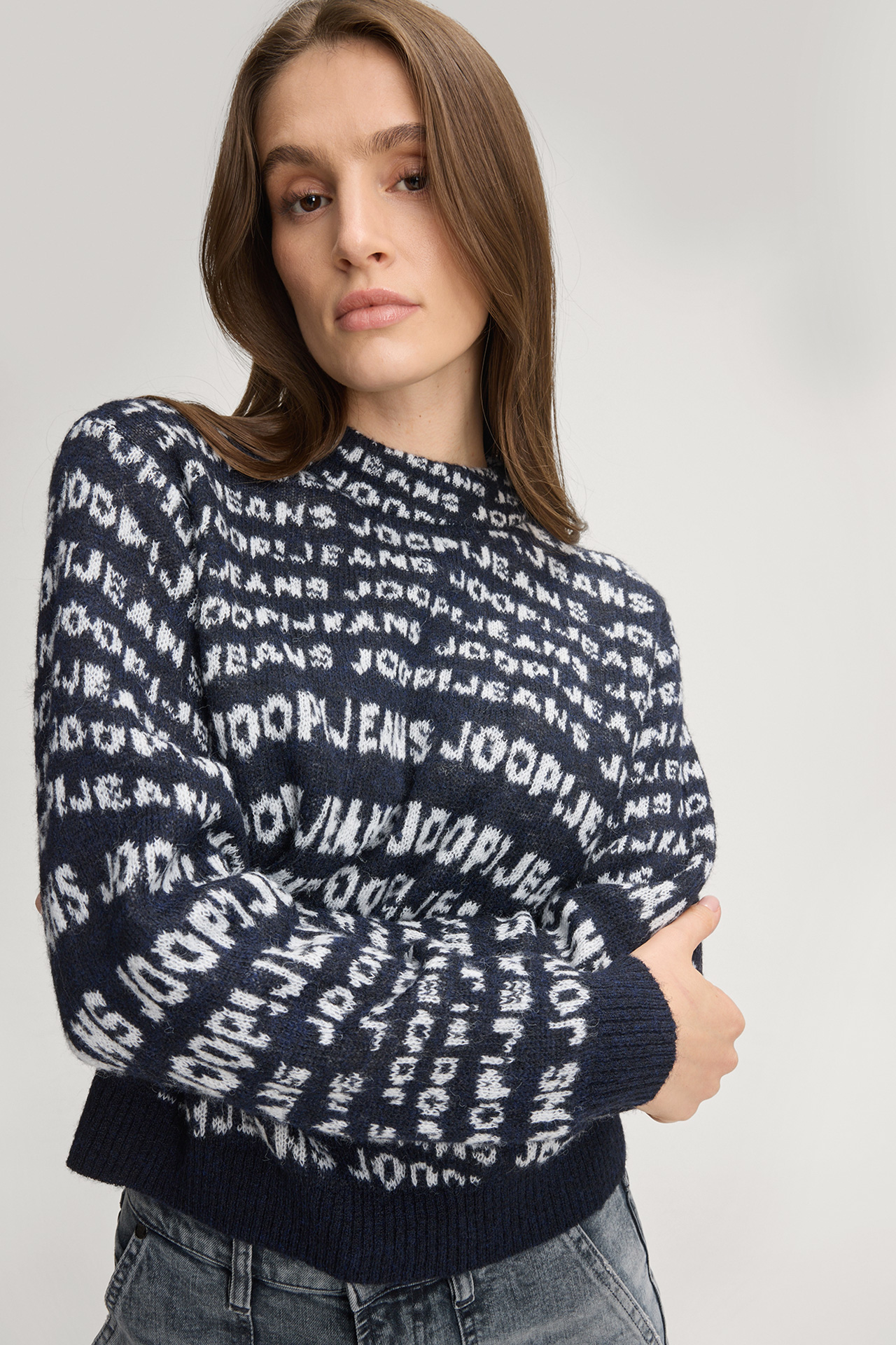 Must-have für ikonische Signature Styles: der Pullover Kalissa aus Logo-Jacquard-Strick mit schmalem Rundhalsausschnitt und in moderner Optik. Gerippte Bündchen runden das Design ab. Aus Wollmix.