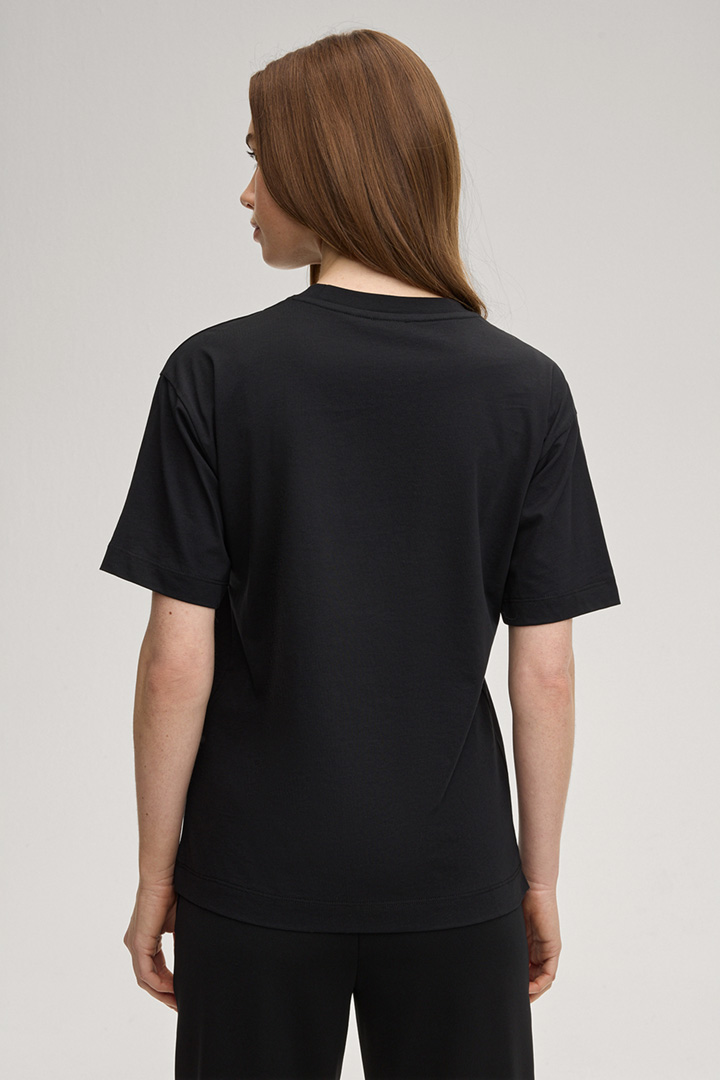 Als Statement Piece erweist sich das T-Shirt Toraya mit Logo-Schriftzug im Glitzer-Design. Der Look erhält durch den Rundhalsausschnitt und doppelt vernähte Bündchen ein stilvolles Finish, ergänzt durch die Signé-Plakette.