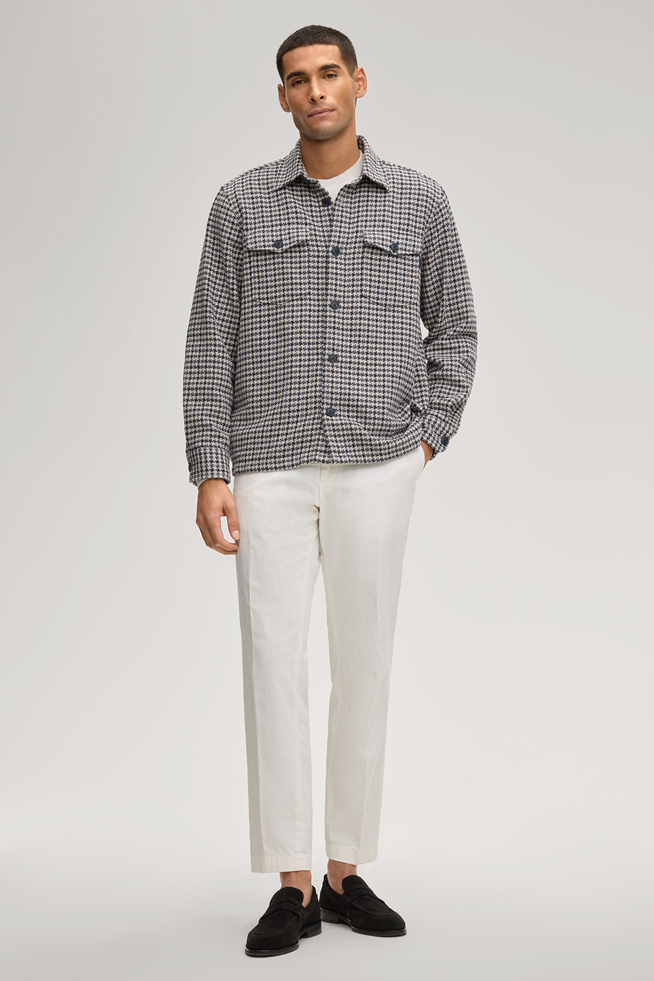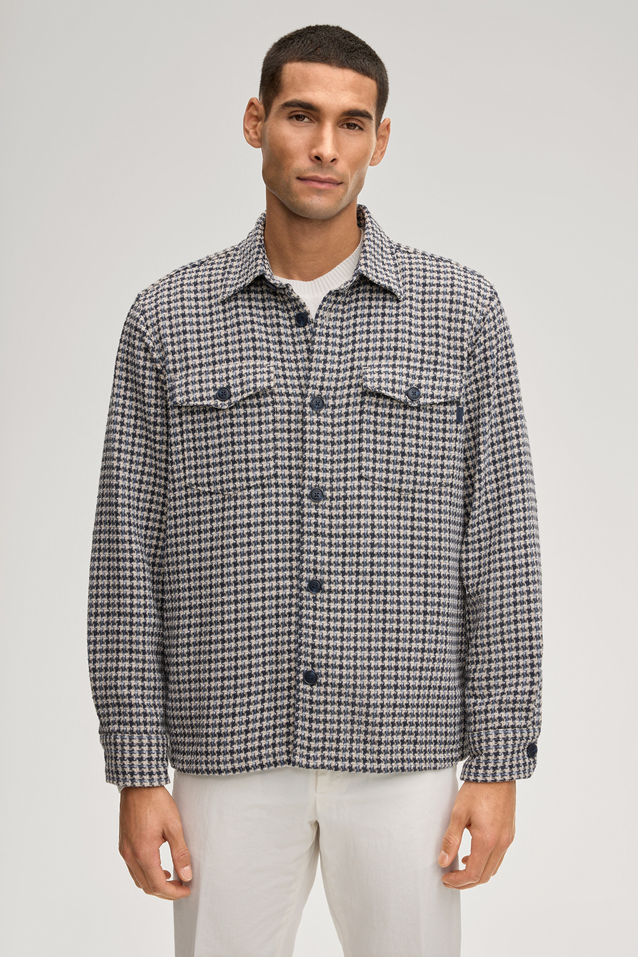 Klassisches Design mit markantem Hahnentritt-Muster: Das Overshirt Kohen aus strukturiertem Baumwollmix überzeugt als vielseitiger Allrounder. Der Look erhält durch den Kentkragen, eine durchgängige Knopfleiste sowie knöpfbare Ärmelmanschetten stilvolle Akzente. Für das moderne Finish sorgen Pattentaschen und eine kleine Label-Flag.