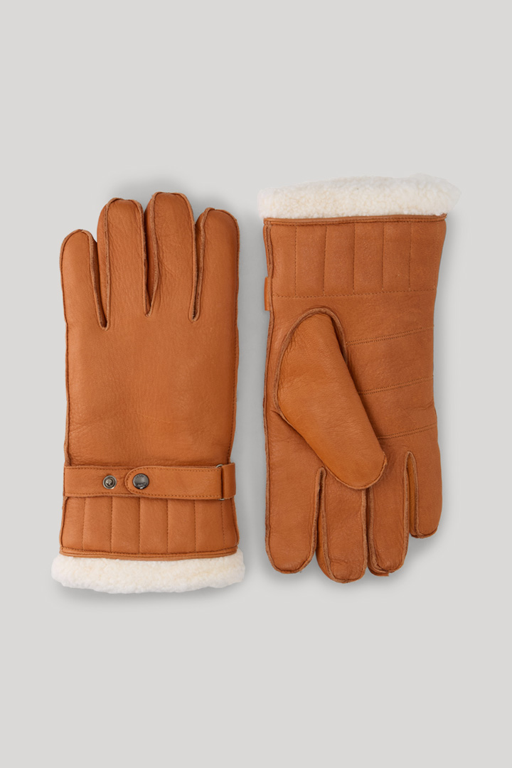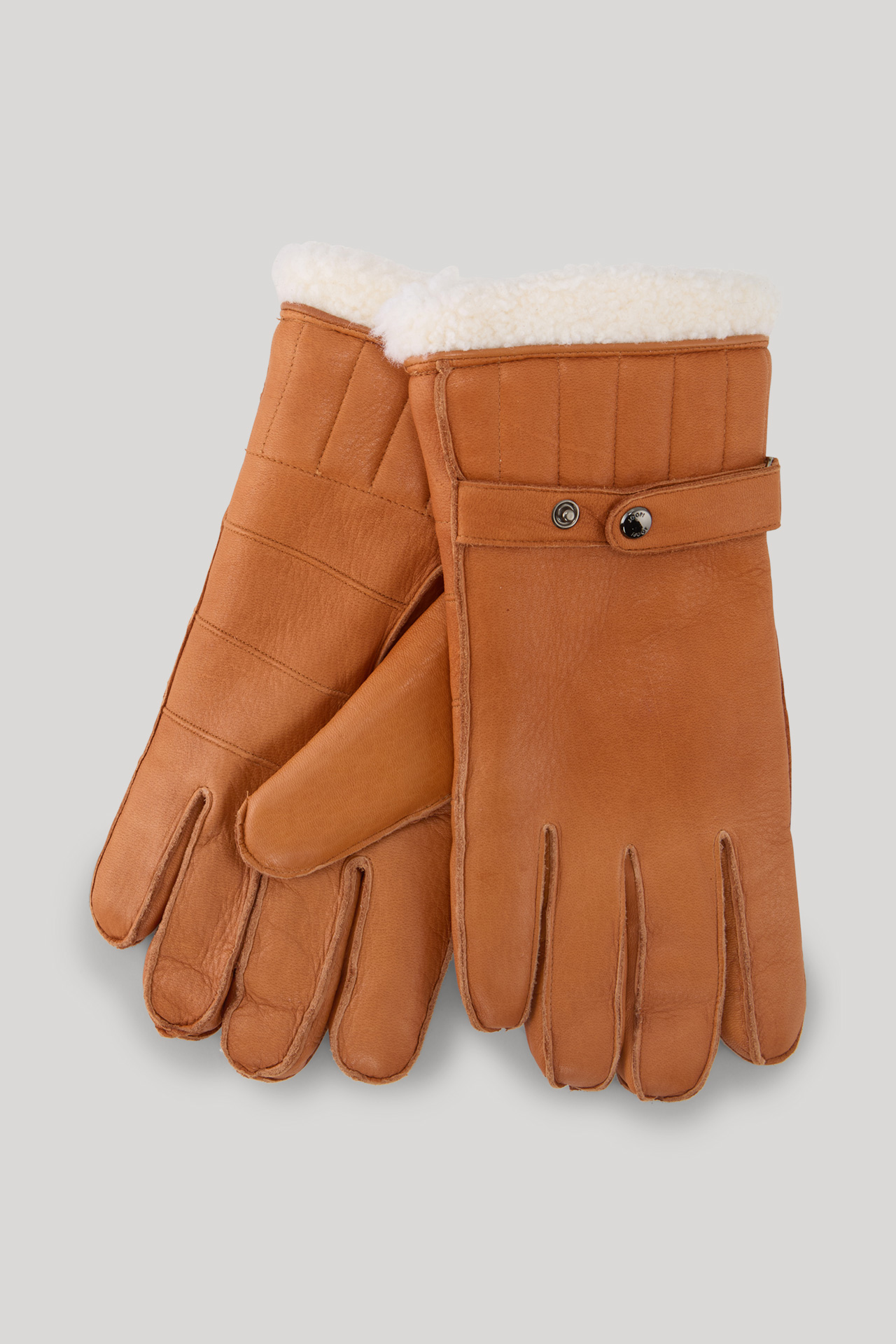 Als edle Statement-Pieces begeistern die Handschuhe aus glattem Hirschleder mit komfortablem Lammfell-Futter. Für ein stilvolles Finish sorgen feine Ziernähte, offene Kanten und ein verstellbarer Druckknopfriegel am Schaft.