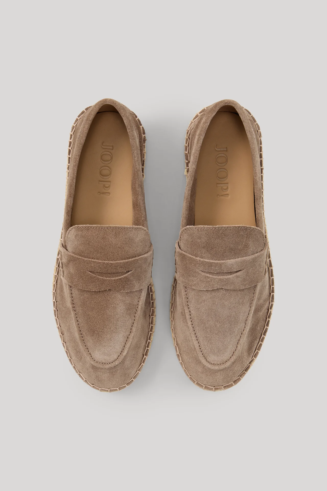 Im klassischen Espadrilles-Stil mit Bast-Gummisohle machen die Slipper Velluto Massimo Lust auf den nächsten Sommerurlaub – perfekt zu einem leichten Hemd und einer Leinenmix-Hose oder als Ergänzung zum Duo aus T-Shirt und Jeans. Das edle Design zeichnet sich durch die Qualität aus purem Veloursleder aus. Akzente setzen tonige Riegeldetails, Stitchings sowie die Logoprägung auf der Decksohle.