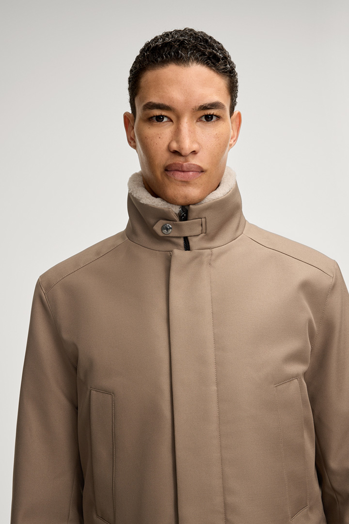 Die Jacke Darry zeichnet sich durch den Stehkragen mit Teddyfell und das Duo aus verdecktem Zipper und Knopfblende aus, stimmig ergänzt durch Leistenund Pattentaschen. Ein dezentes Logopatch rundet den Style ikonisch ab.