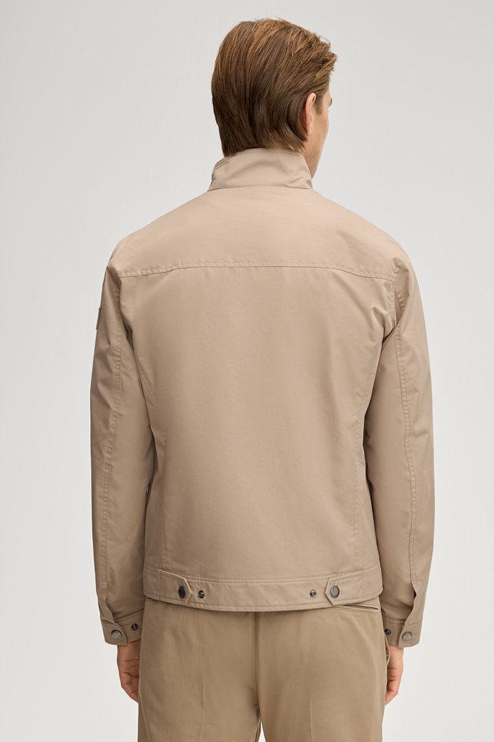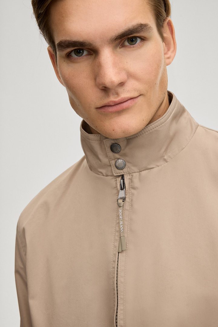 Als perfektes Update lässiger Alltagslooks erweist sich die Jacke Janos im Biker-Stil mit Stehkragen und knöpfbaren Ärmelabschlüssen. Der klassische Zipper sowie seitliche Taschen ergänzen das Piece. Für ein komfortables Finish sorgen die Qualität im Baumwoll-Mix sowie der Saumabschluss mit rückseitigen Druckknopfriegeln.