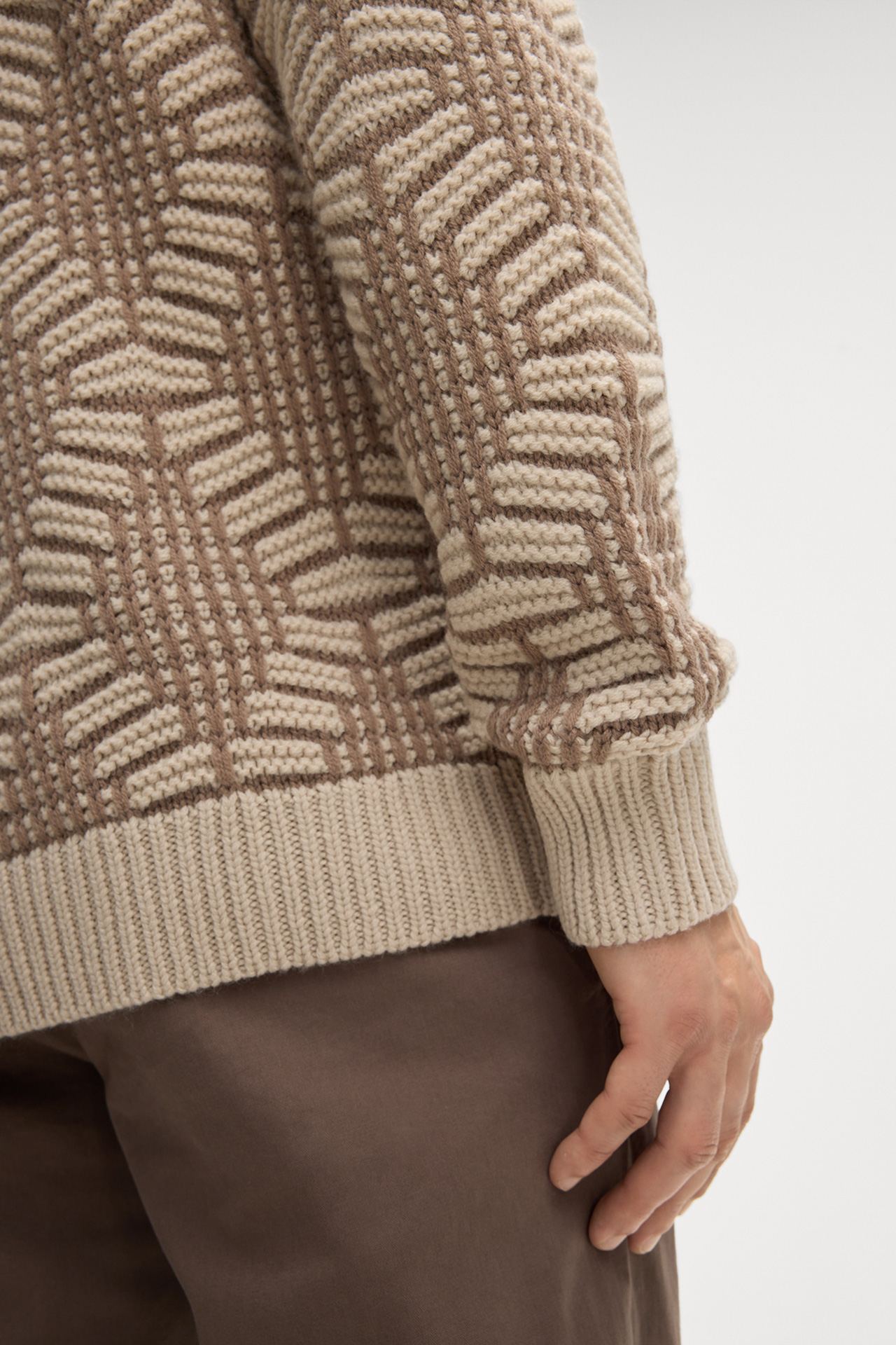 Im geometrisch strukturierten Strickdesign präsentiert sich der Pullover Diamondor. Gerippte Ärmelbündchen und Saum ergänzen den urbanen Stil. Für angenehmen Tragekomfort sorgt die Verarbeitung im Wollmix.