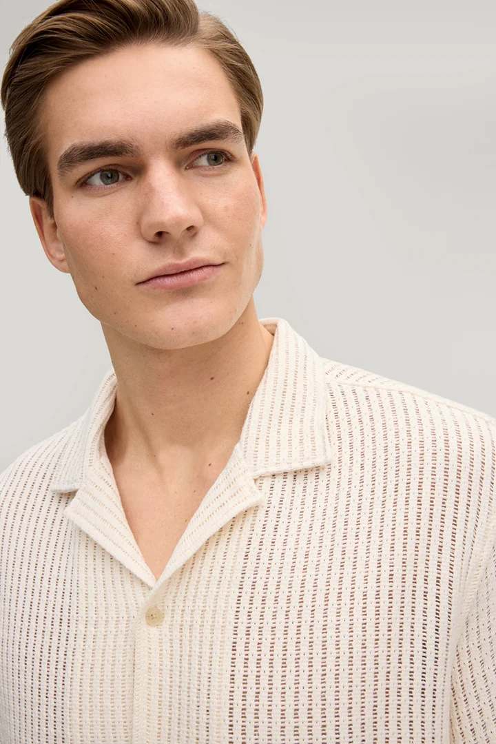 Kurzarm-Hemd Kawan in Offwhite strukturiert