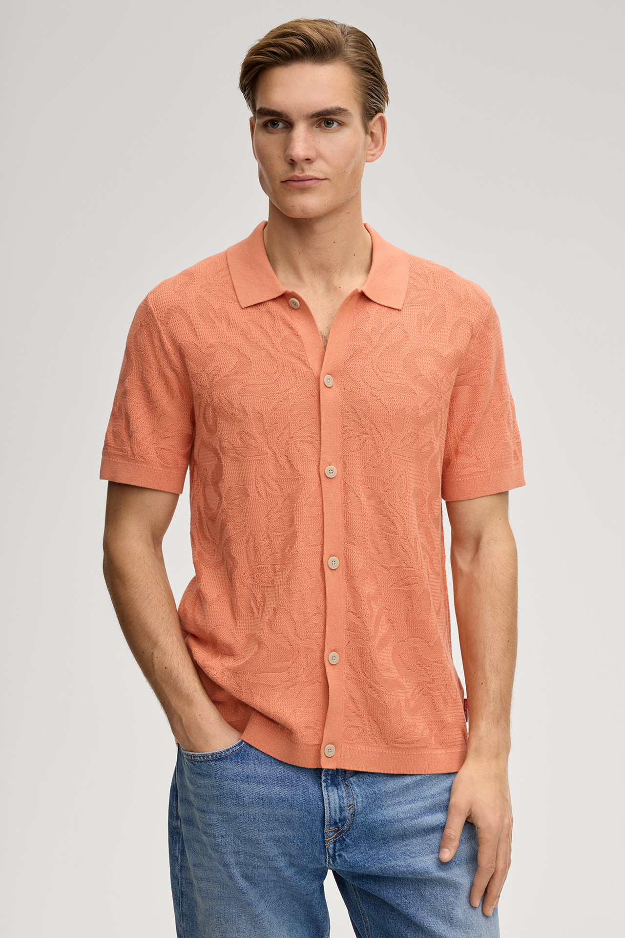 Gestrickte Baumwolle mit floraler Struktur verleiht dem Polohemd Rasmo einen raffinierten Look. Klassische Details wie der Polokragen und die durchgehende Knopfleiste ergänzen den Style. Für Komfort sorgen gerippte Bündchen an den kurzen Ärmeln und am Saumabschluss.