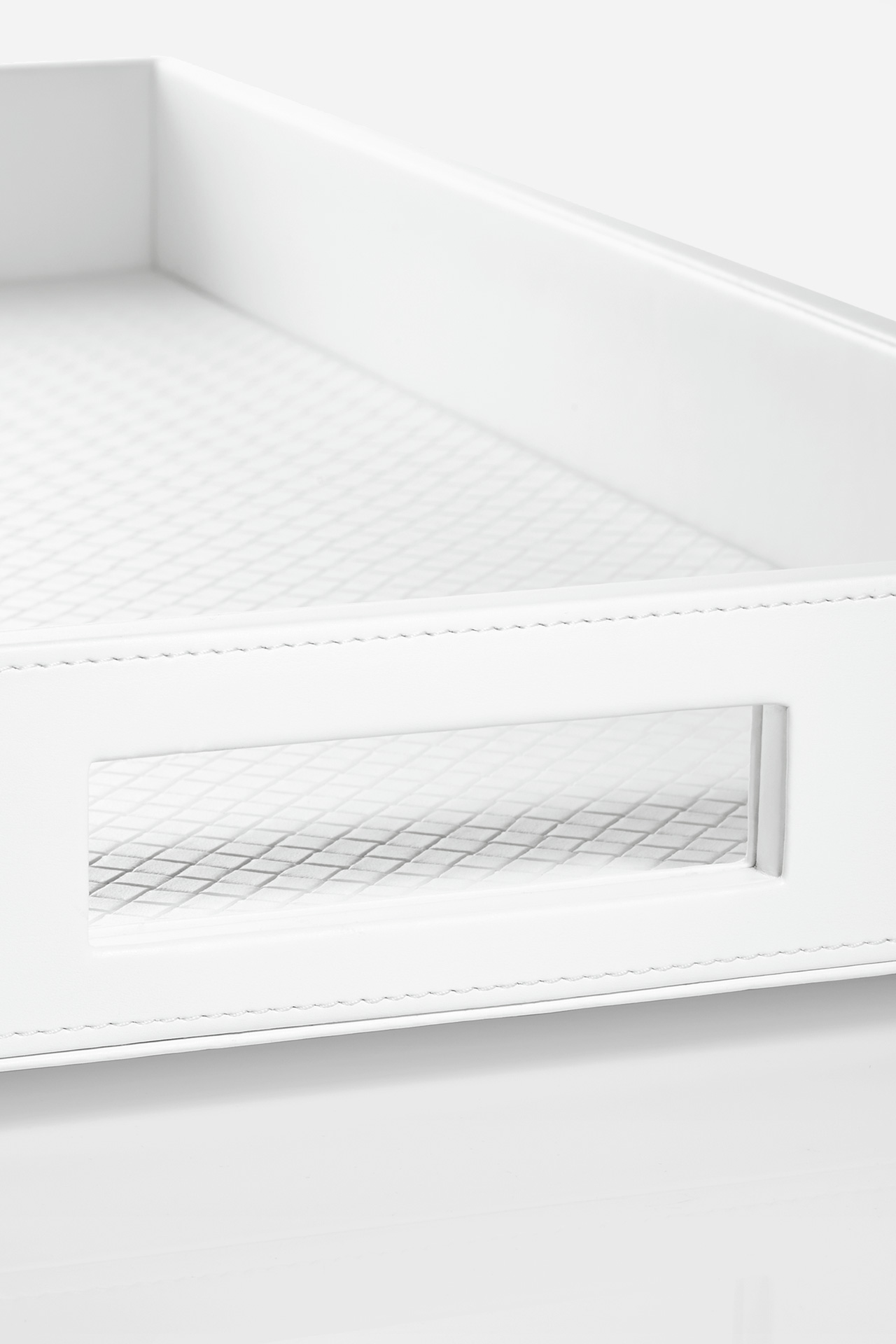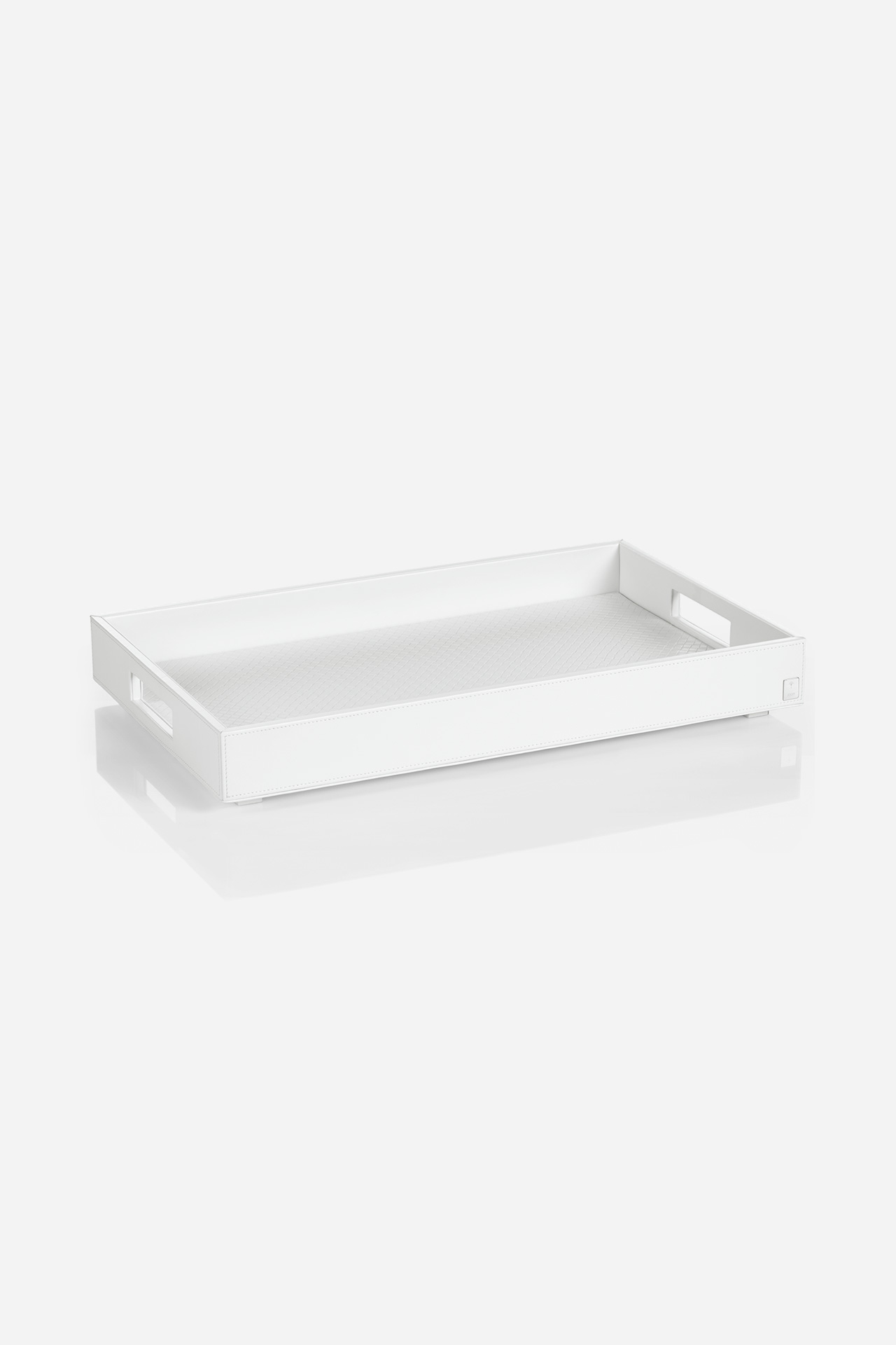 Der kleine Luxus für jeden Tag: Das dekorative Tablett der Linie HOMELINE erweist sich als vielseitiges Lieblingsstück, ergänzend zu den Wohnaccessoires wie Bilderrahmen und Boxen. Für eine zeitlos schöne Ästhetik sorgt die moderne Lederoptik mit akzentuiertem Flechtmuster, abgerundet durch Ziernähte und eine Logo-Signatur. Ob im Schlaf- oder Wohnbereich, dekorativ mit Kerzen, Vasen oder Table Books kombiniert, das Tablett begeistert als raffinierter Eyecatcher.
