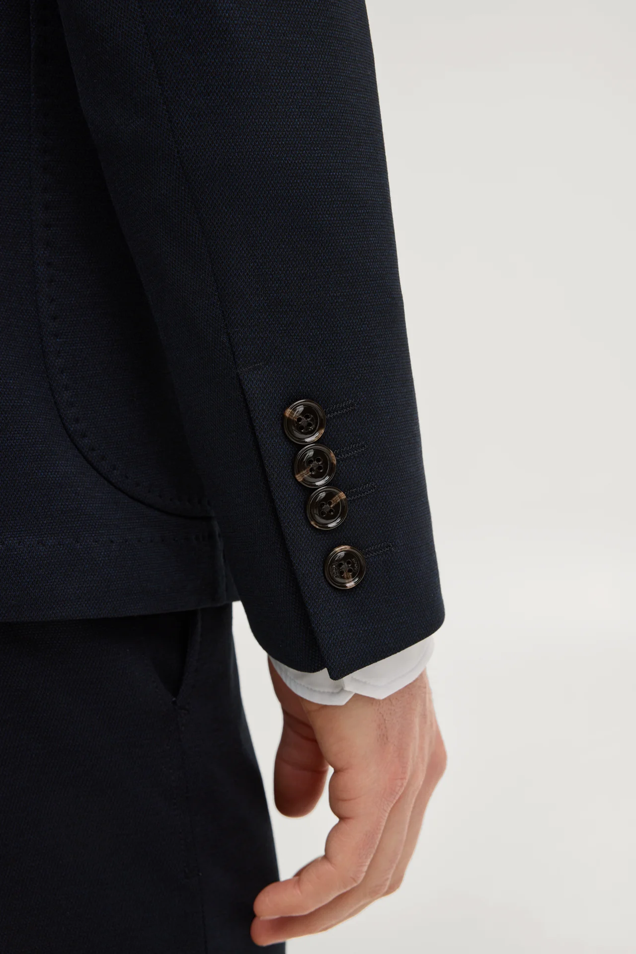 • eingesetzte Ärmel mit Zierschlitz und 4 Knöpfen