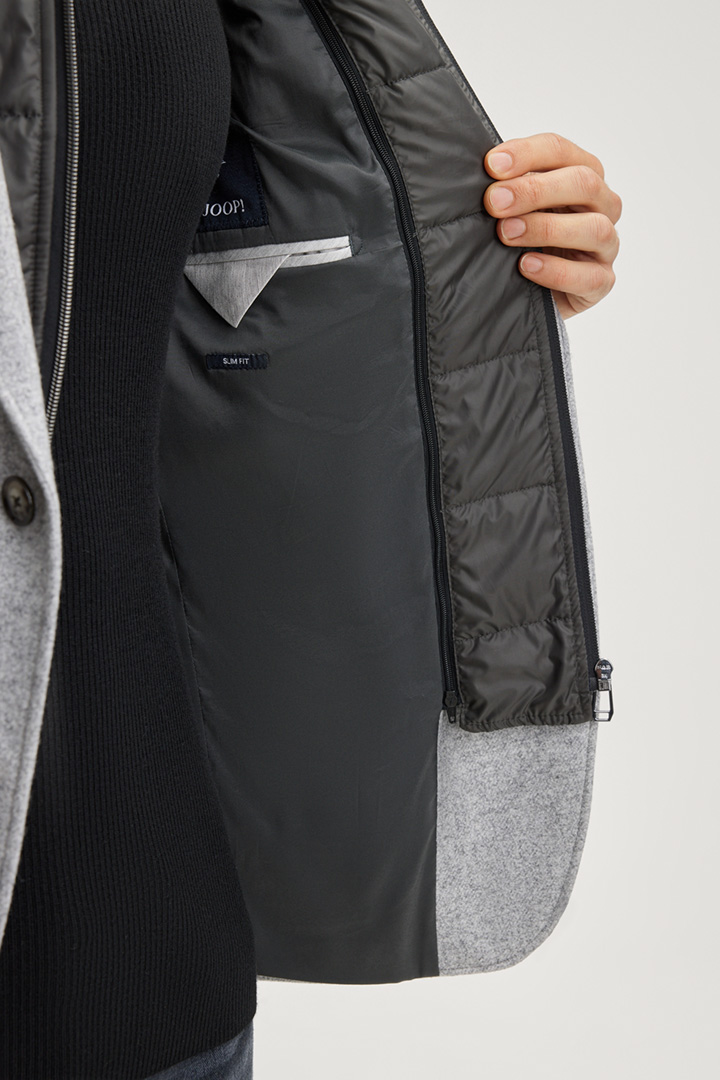 Clever im Design präsentiert sich das Sakko Hectic aus komfortabler Wollmischung mit Stepp-Zip-Inlay. Ein klassischer Reverskragen, knöpfbare Ärmelabschlüsse und aufgesetzte Taschen zeichnen den Look aus. Rückseitige Bewegungsschlitze verleihen ein stimmiges Finish.