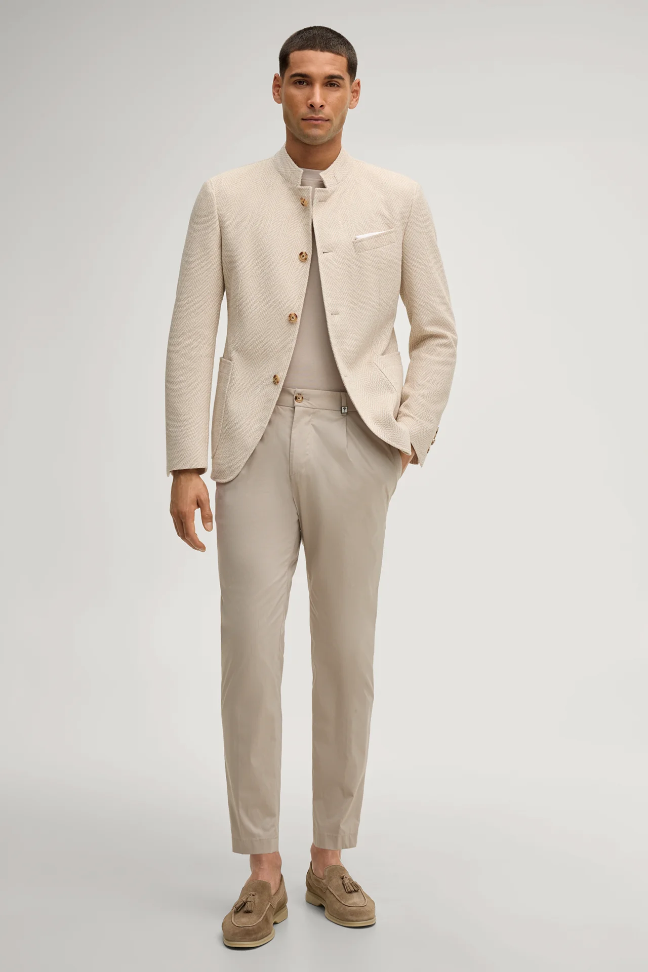 Leichter Baumwollmix und ein komfortables Teilfutter machen das Sakko Hiro zum Favoriten für stilvolle Outfits – passend in jeder Saison. Mit markantem Fischgrätmuster erhält der Look das exklusive Flair. Moderne Akzente verleihen der Stehkragen, der durchgängige Knopfverschluss sowie aufgesetzte Taschen. Ein rückseitiger Bewegungsschlitz bietet zusätzliche Flexibilität.