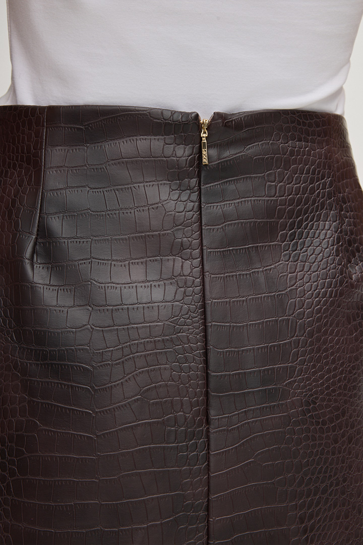 In Croco-Optik aus Kunstleder überzeugt der feminine Rock Saron. Für ein komfortables Finish sorgt ein verdeckter Zip-Verschluss sowie der anliegende Bund. Das Piece punktet zu vielseitigen Stylings.