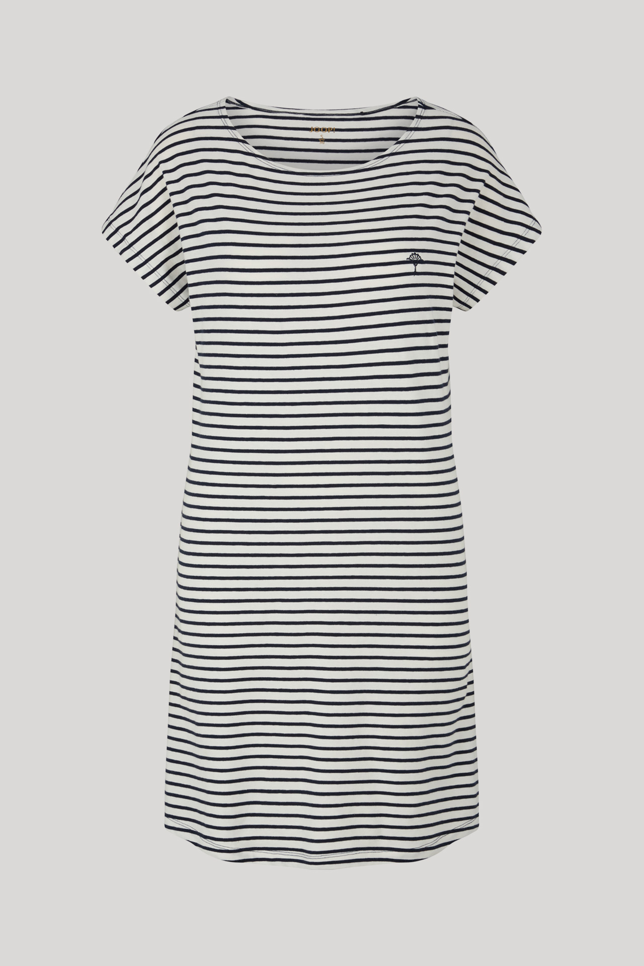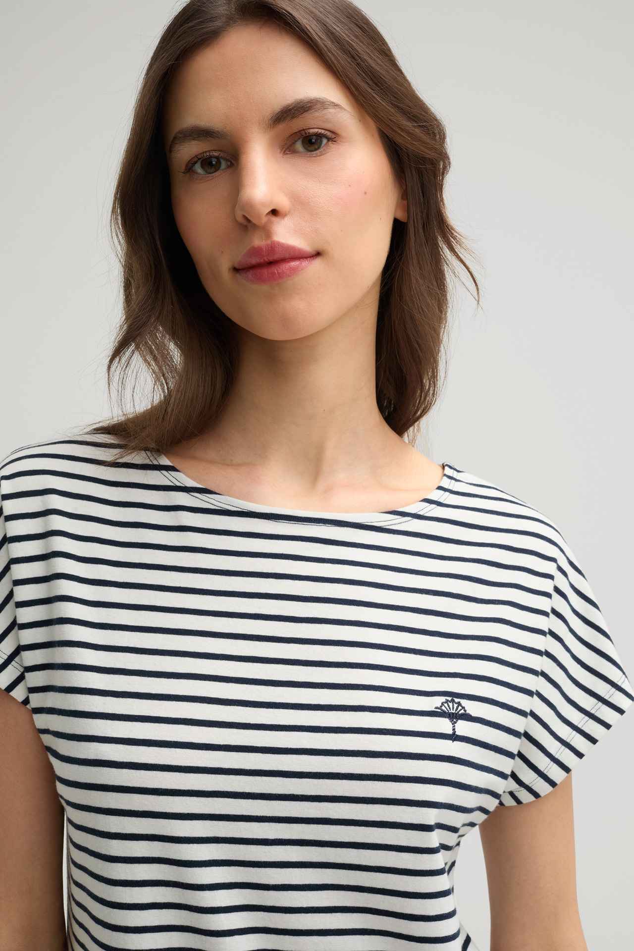 Im maritimen Streifen-Design begeistert das Longshirt als souveränes Nightwear-Piece. Für Komfort sorgt der stretchige Baumwollmix, während ein U-Boot-Ausschnitt und extrakurze Ärmel stilvolle Details hinzufügen. Ein Cornflower-Stiching auf Brusthöhe rundet das Essential ikonisch ab.