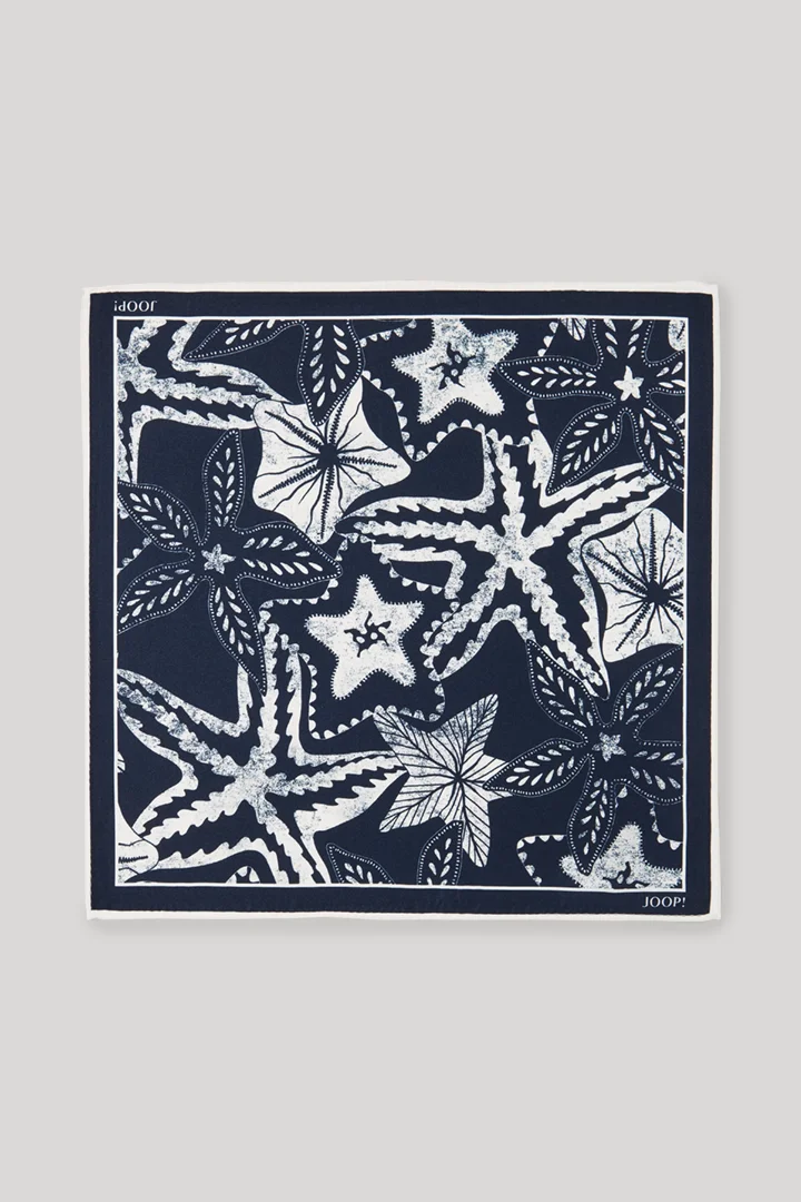 This pure silk pocket square with a striking print gives any look a touch of elegance. It looks striking with formal suits and smart with a summery shirt and chinos paired with loafers to give an elegant look at stylish occasions. Subtle contrasts and the logo lettering round off the accessory.