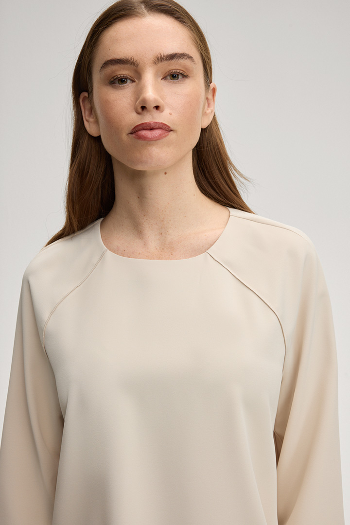 Modern three-quarter length sleeves in raglan style and the zip fastening at the back mark out the sophisticated flair of the Baika blouse. A feminine round neckline complements the look, while the appliquéd signé tag creates an iconic accent. This versatile blouse pairs well with skirts, shorts, and the new trouser looks.