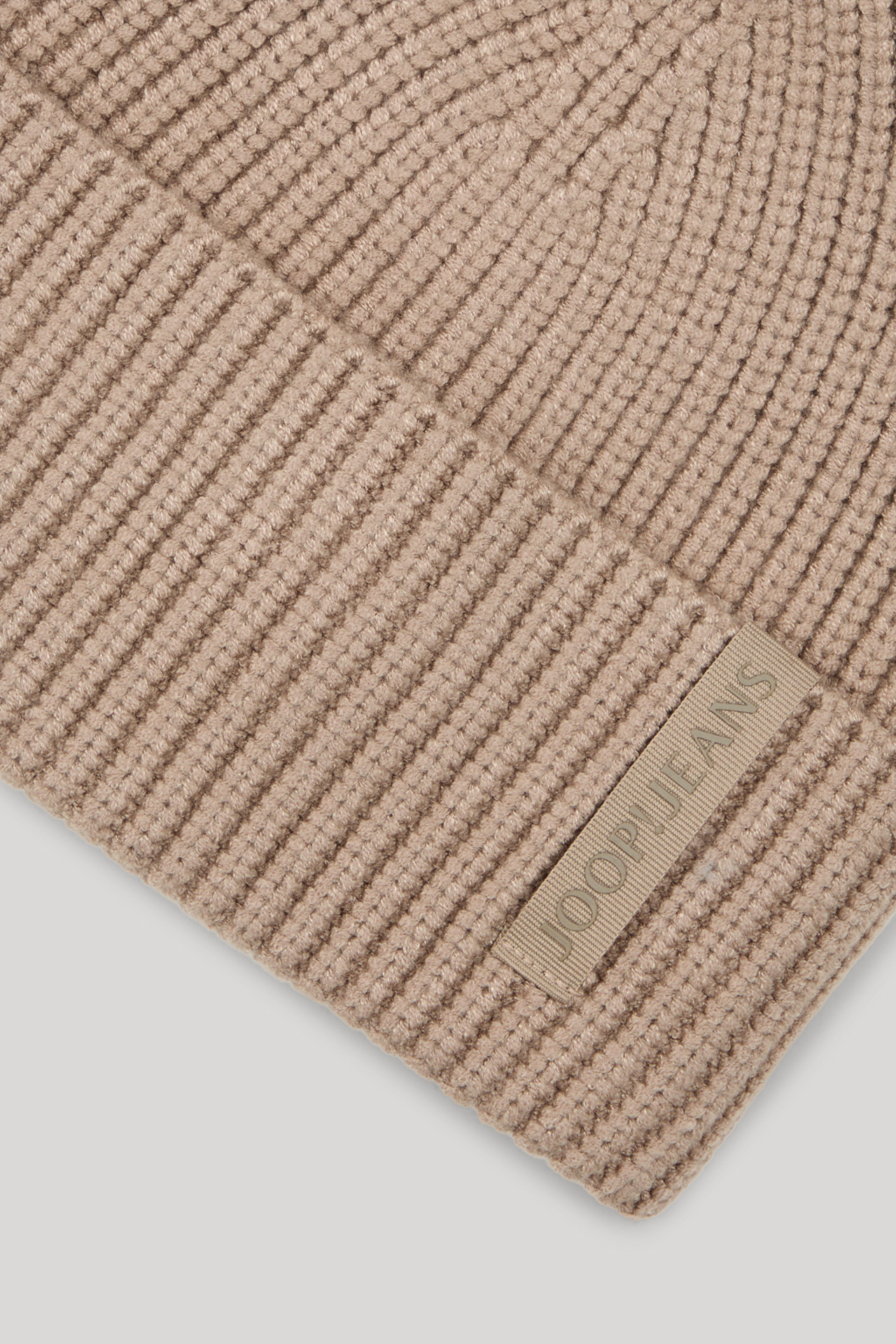 The Lucifer beanie in ribbed knit quality made from a comfortable viscose blend excels as a warming essential. The logo corded ribbon with rubberised lettering on the turn-up adds a cool label accent.