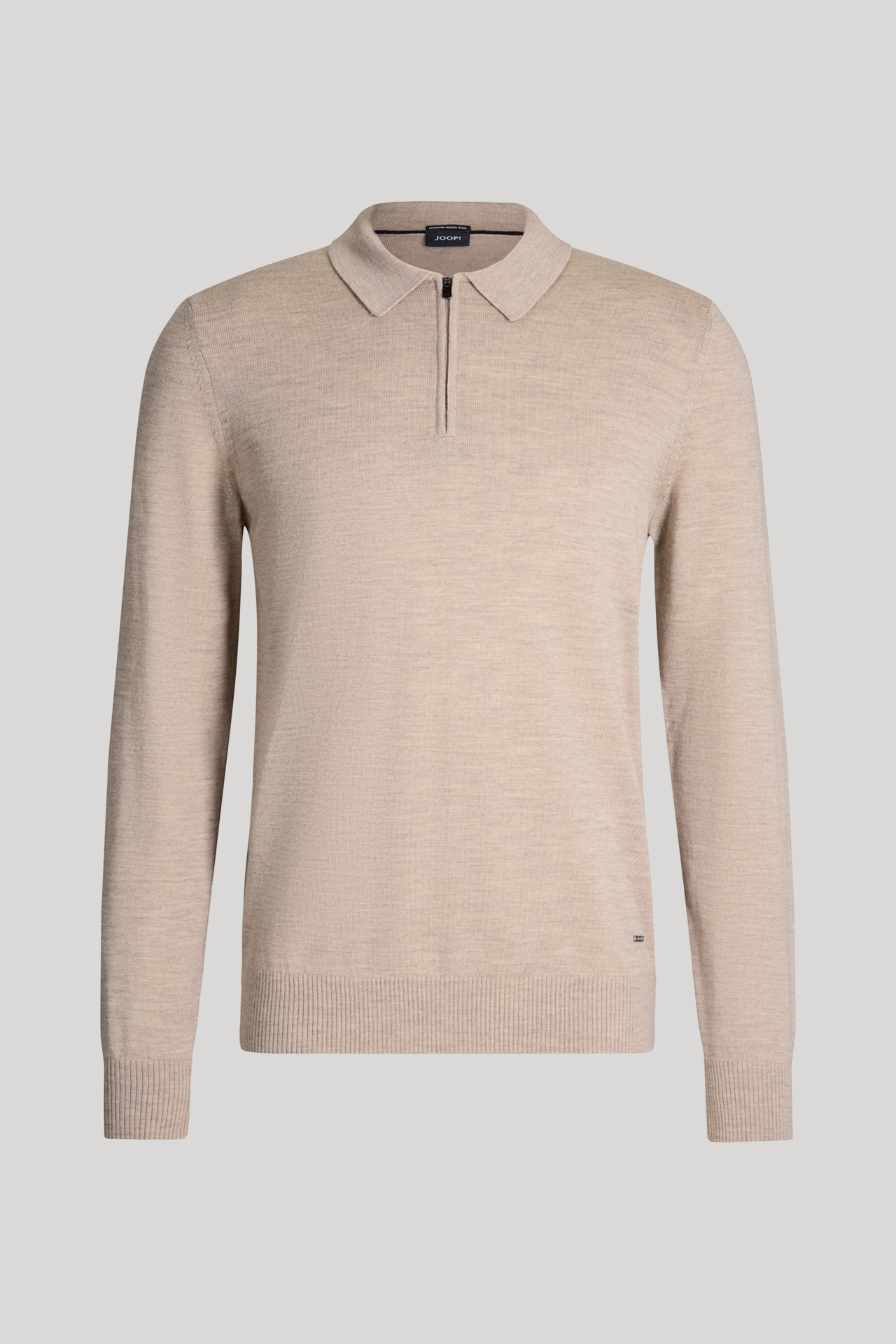 Must-have all-rounder: The Dondor pullover in pure virgin wool with a polo collar and zip. Classic long sleeves and ribbed cuffs and hem complement the design. Iconic accent: an appliquéd logo tag.