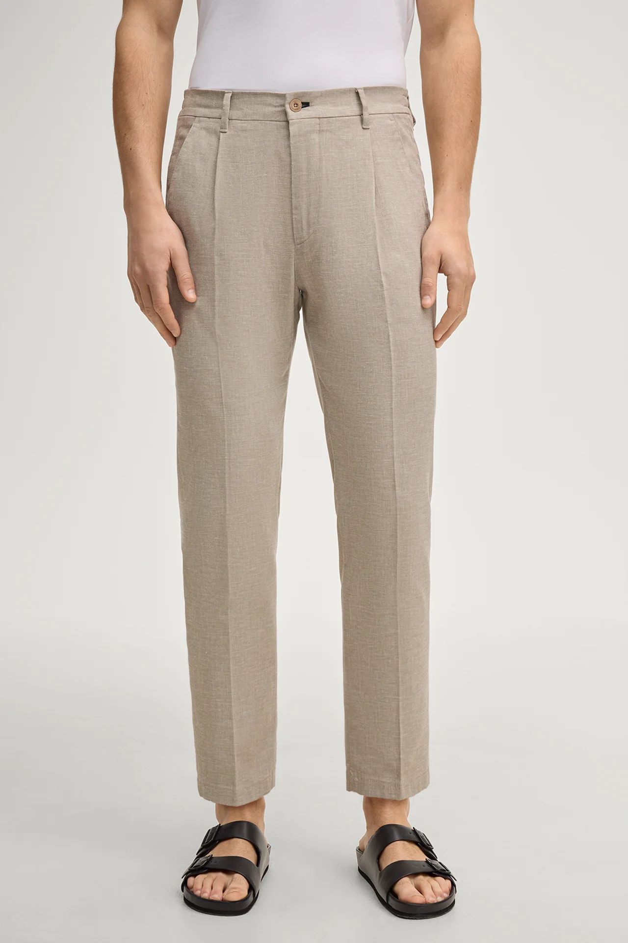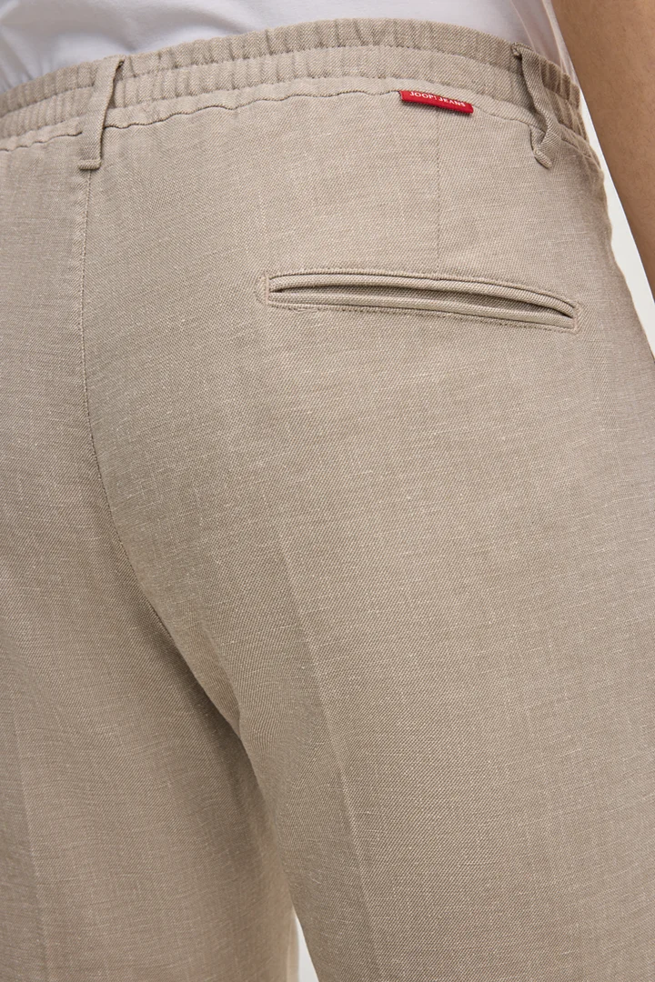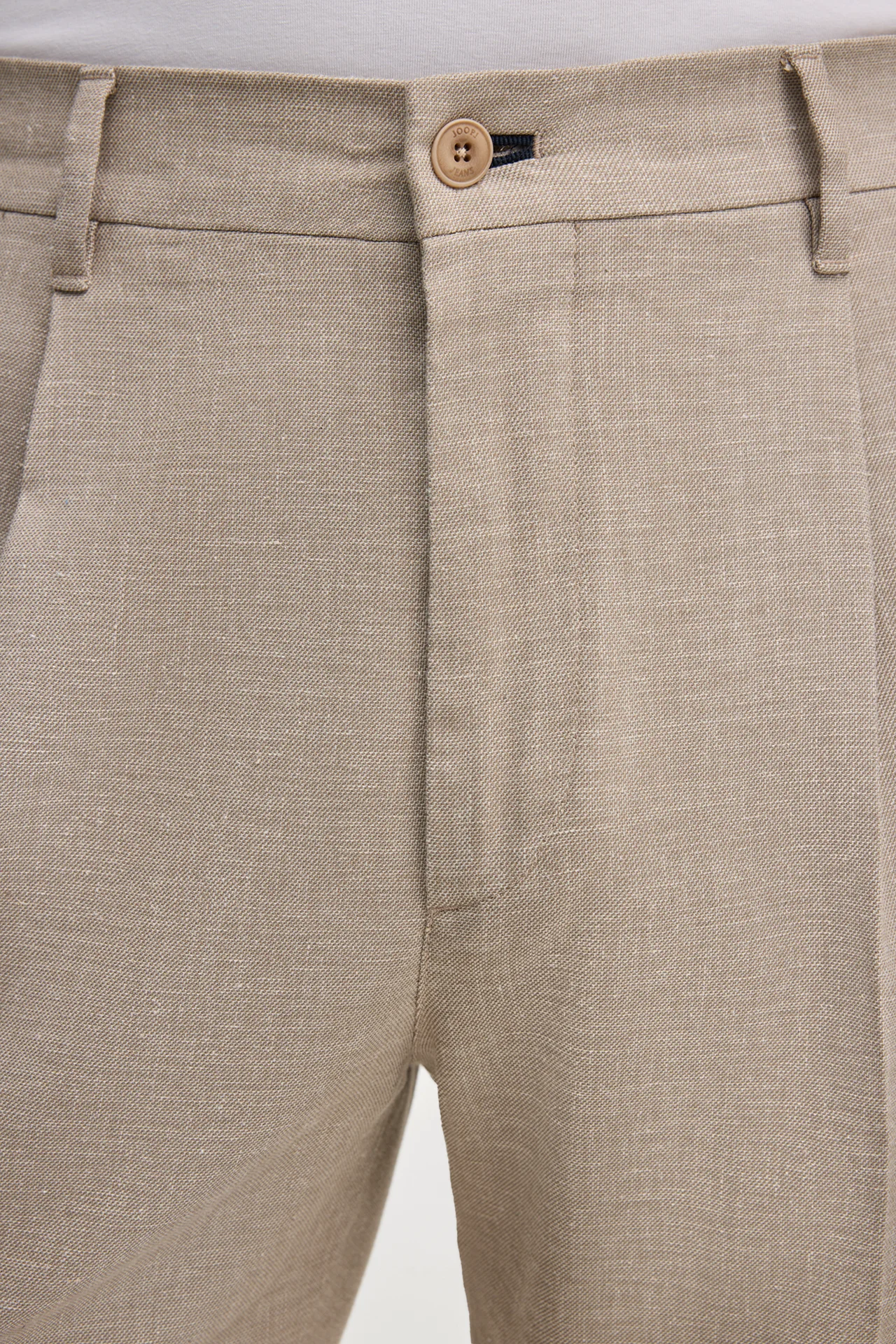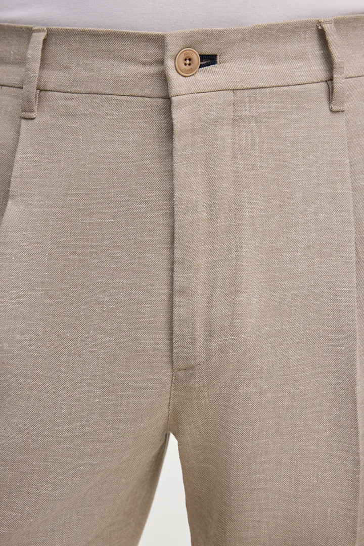 The lightweight stretch cotton-linen blend and relaxed silhouette define the Lead trousers as a comfortable piece, completed by the partially elasticated waistband with belt loops. The waistband and pressed creases show off the classical design, which features timeless front and back pockets. The button and zip fastening provides a harmonious finish.