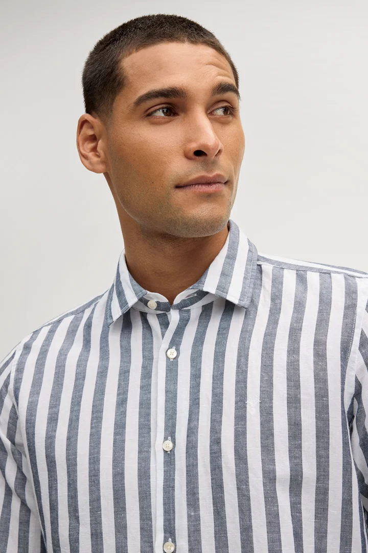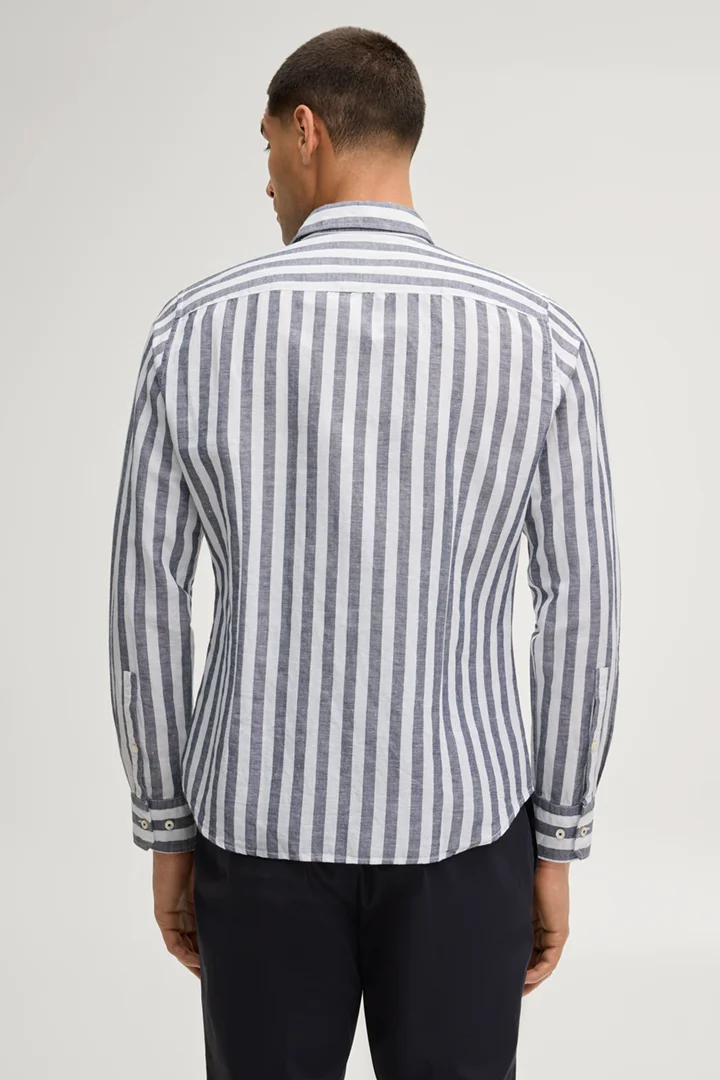 Whether for formal occasions or looks with classical charm, the Pit striped shirt proves to be a versatile favourite. Elegant emphases are given by the spread collar, buttoned cuffs and rounded hem. The full-length button fastening and a back shoulder yoke harmoniously round off the tailored design.