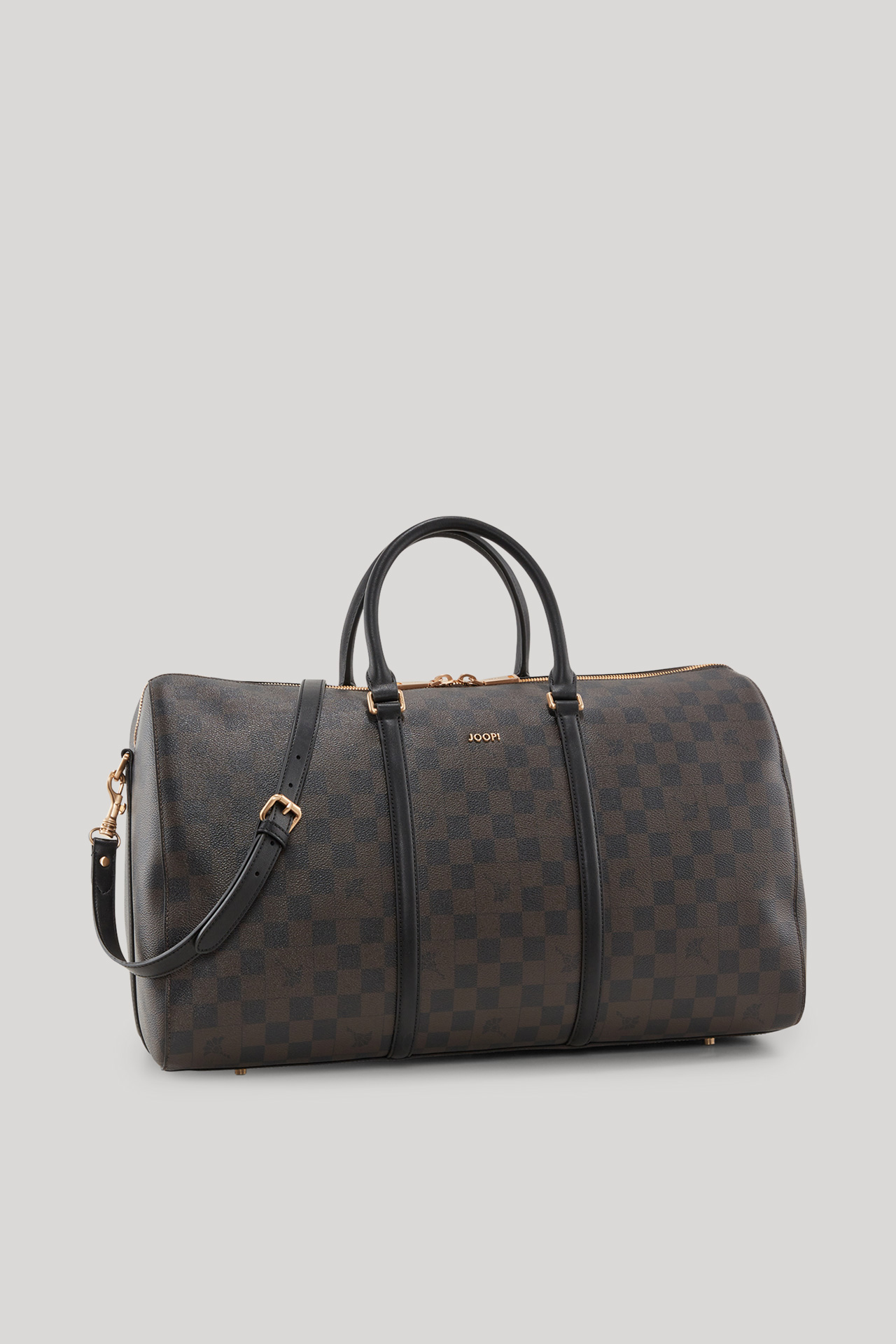 The JOOP! Cortina Piazza Aurora weekender comes in a signature look with an elegant chessboard pattern and brand-typical cornflowers. Thanks to the spacious interior compartment, this essential becomes the perfect travel companion for versatile short trips. A long shoulder strap and classic handles complement the luxurious design made from finely grained faux leather and offer variable carrying options.