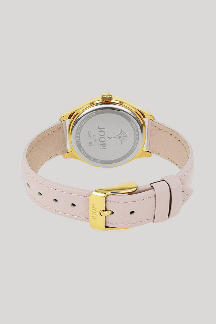 This women’s wristwatch in gold/rosé exudes feminine elegance. The combination of stainless steel and calfskin gives it a luxurious twist - rounded off with fine decorative stones and a logo signature on the dial. The pin buckle lends the item a perfect finish. Style tip: Mix and match with the new rings and bracelets from the Collection to create expressive highlights.