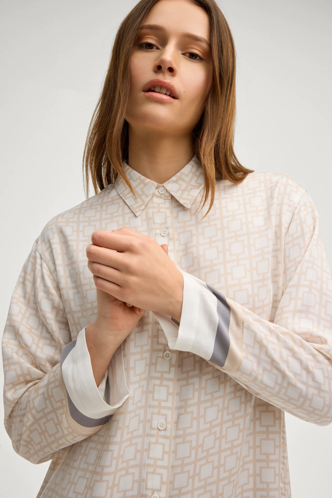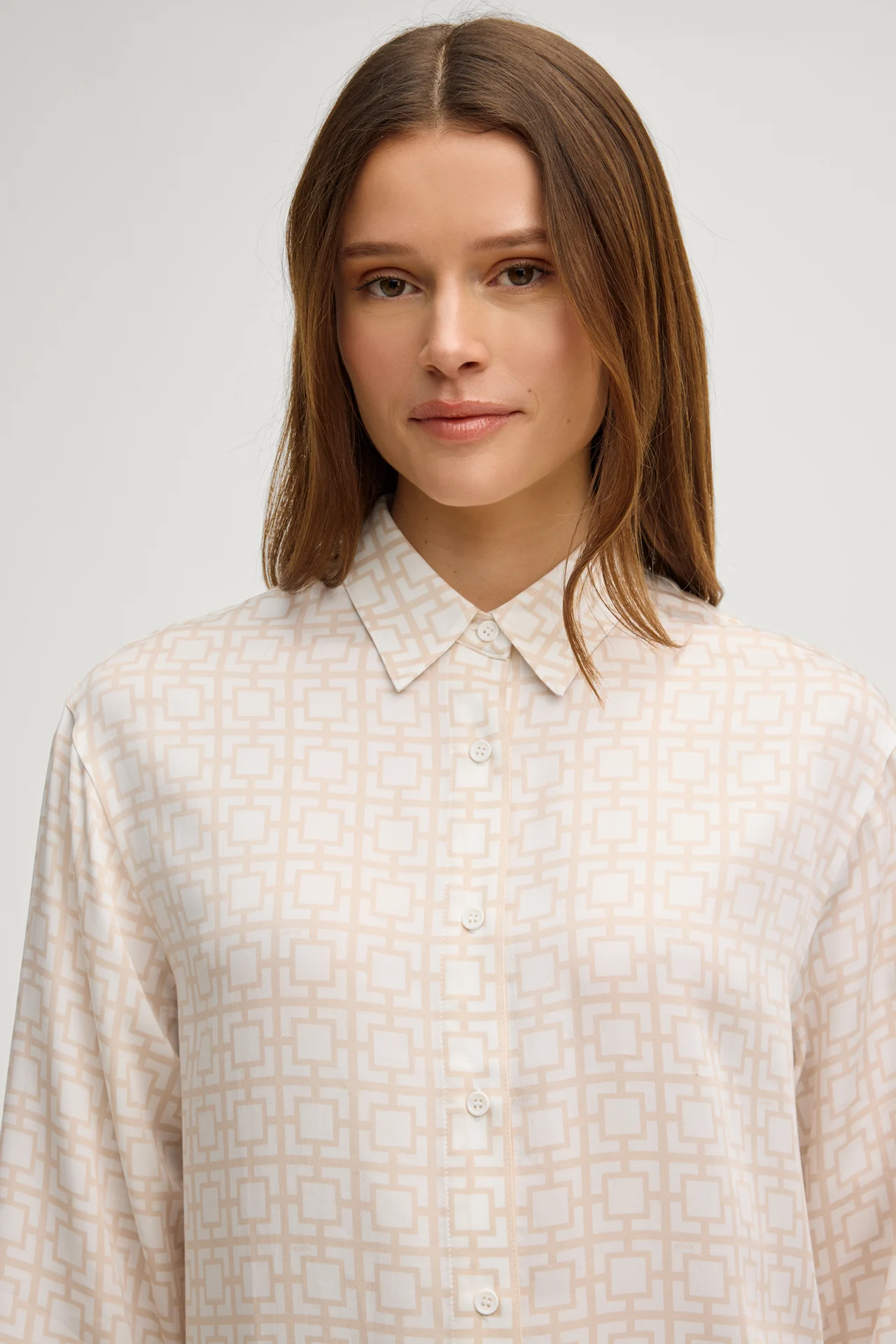 From the Modern Essence loungewear series, this harmonious-patterned dress with fine striped details exudes pure summer flair. Slightly dropped shoulders, cropped sleeves and a box pleat at the back define the modern look. Classical emphases are provided by the shirt collar and the full-length button placket. Silky-soft lyocell provides pure comfort.