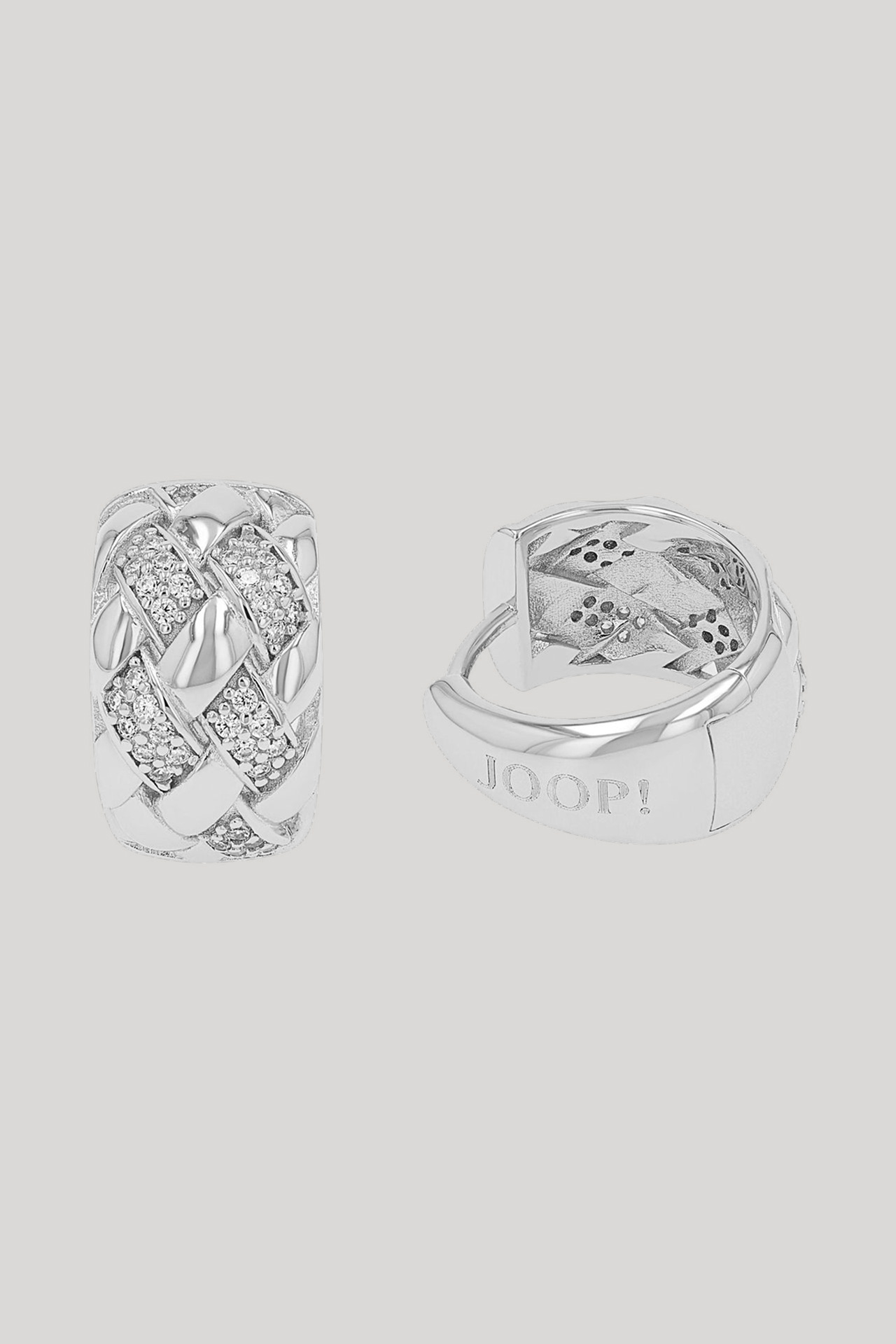 Sparkling zirconia stones enhance these rhodium-plated 925 silver hoop earrings with a unique twist to create a sparkling effect, complemented by the sophisticated design. The delicate hinged clasp lends these items a harmonious finish. Add a touch of glamour: wear them in a set with the matching ring, necklace and bracelet.