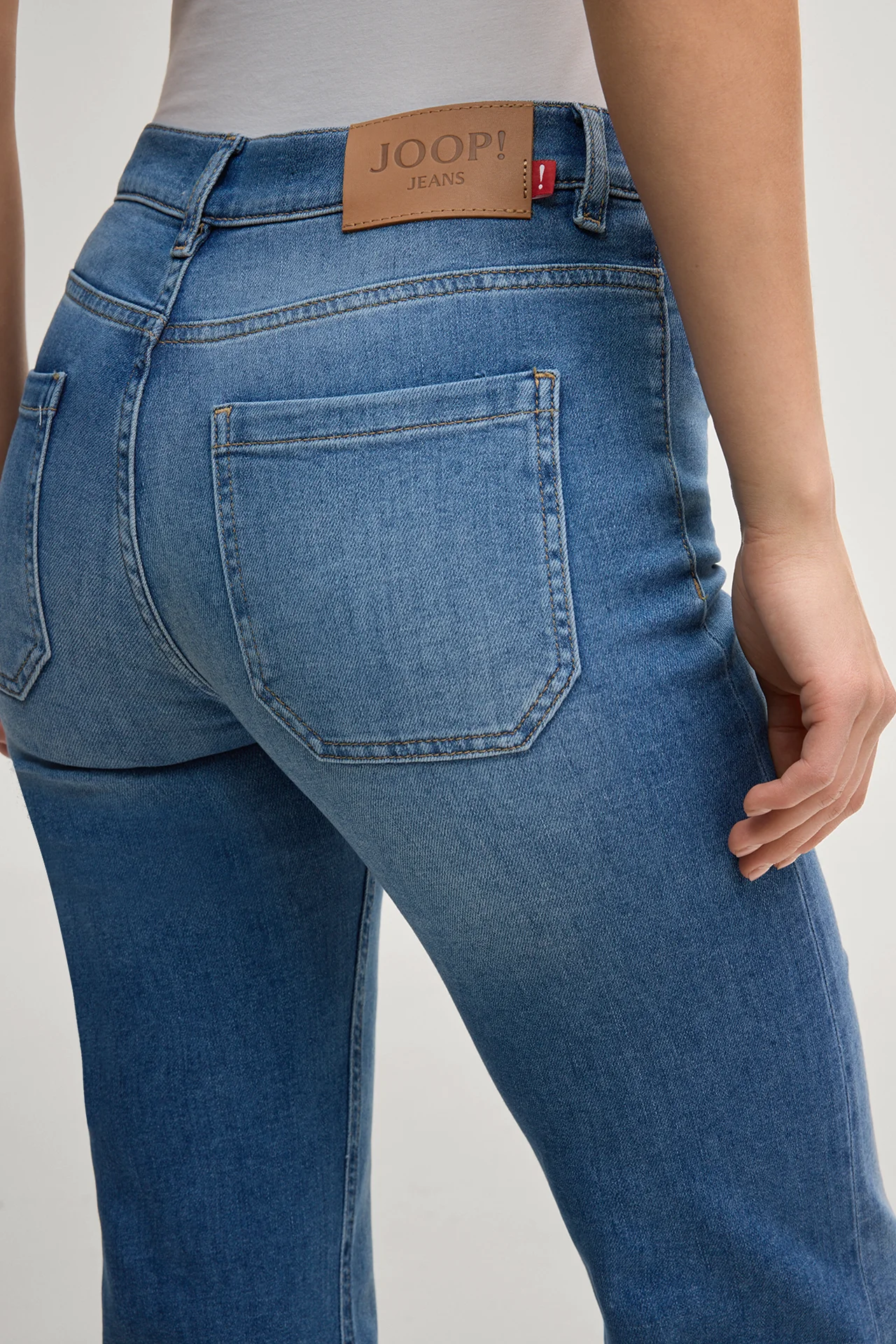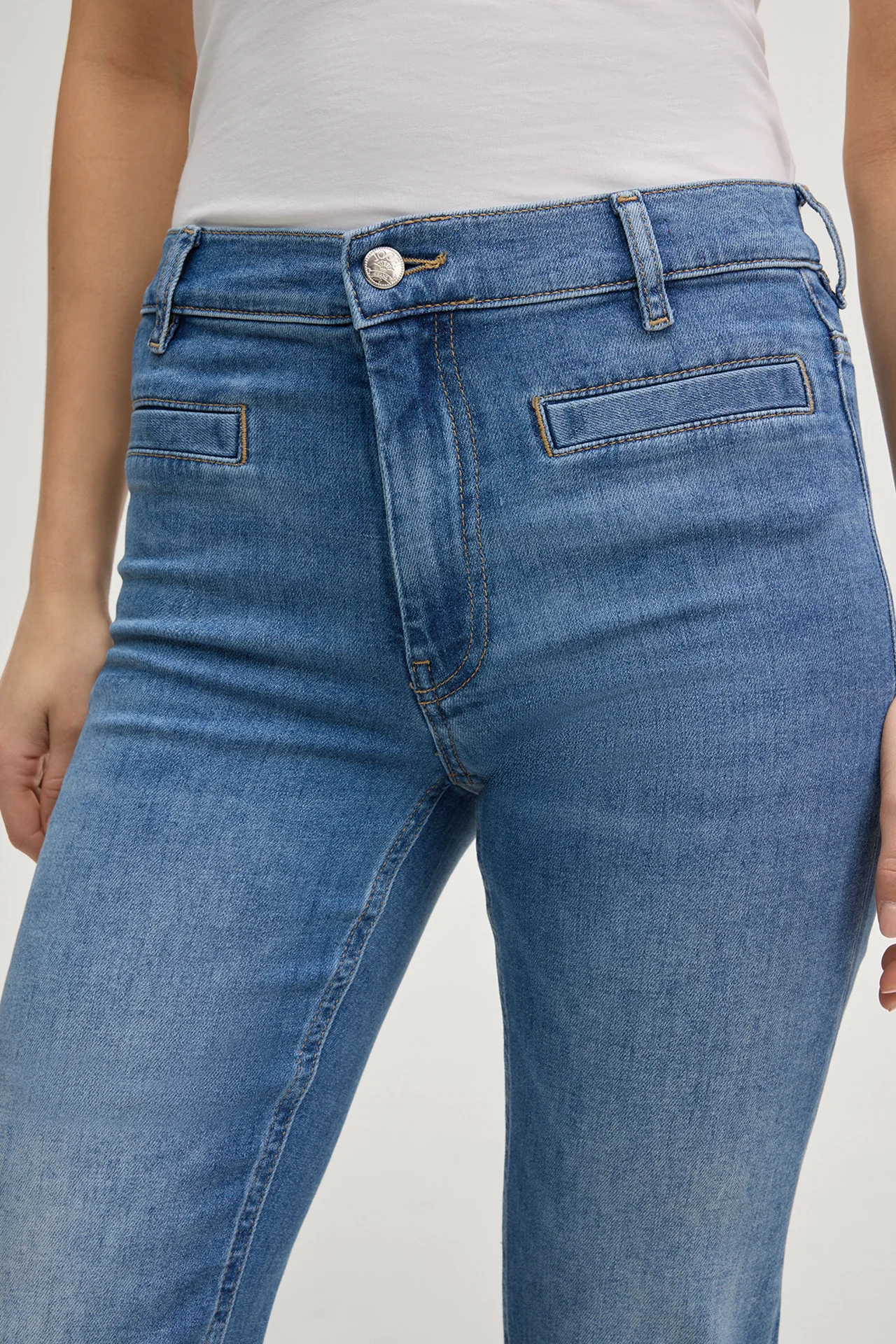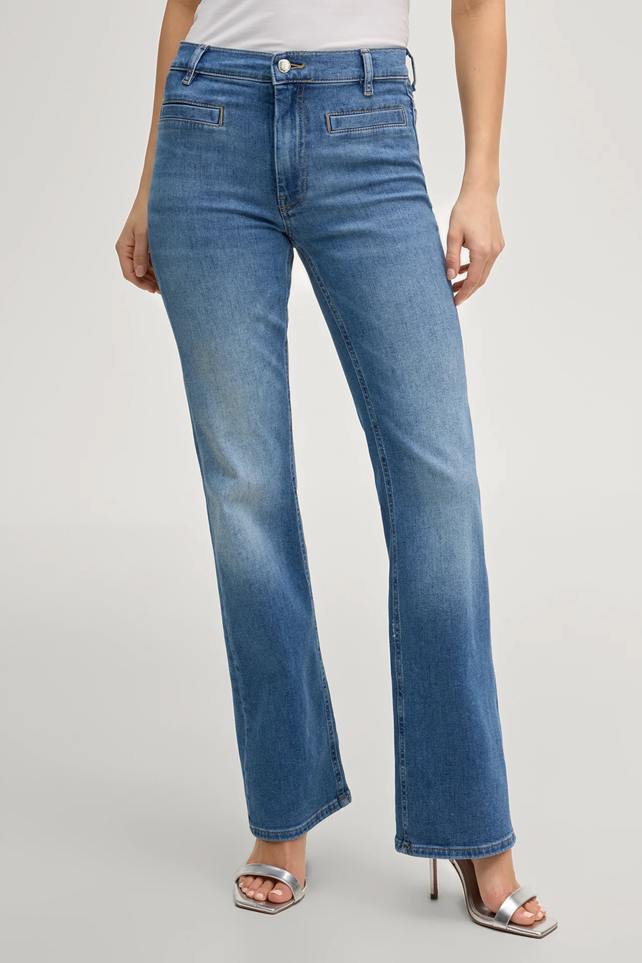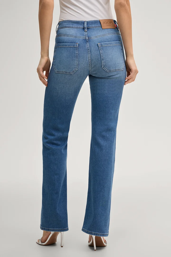 Boocut jeans Elfi in mid blue denim, high waist