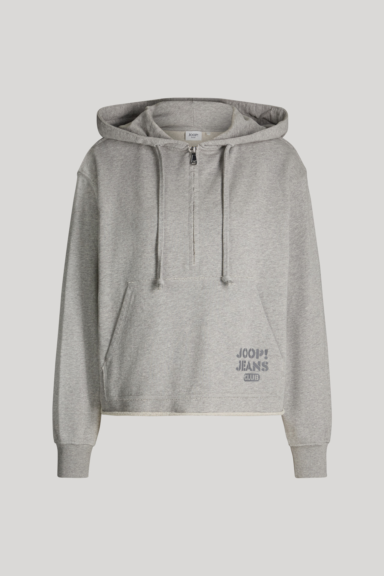 The Talia hoodie in sweatshirt quality made of pure cotton highlights casual looks, classically complemented by the adjustable hood and patch kangaroo pocket. Ribbed cuffs and dropped shoulders ensure next level comfort. The logo print and the rolled edge on the hem lend a modern finish to this piece.